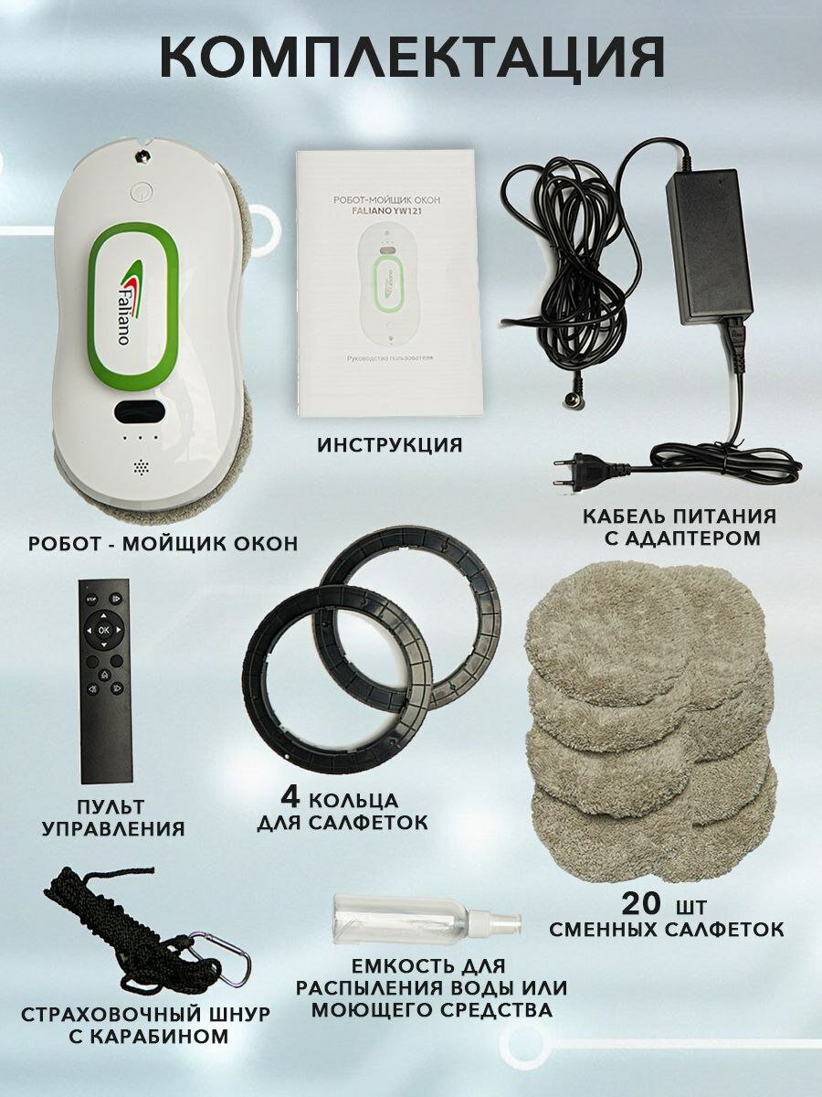 Робот мойщик окон Faliano с двумя распылителями, 20 салфеток в комплекте