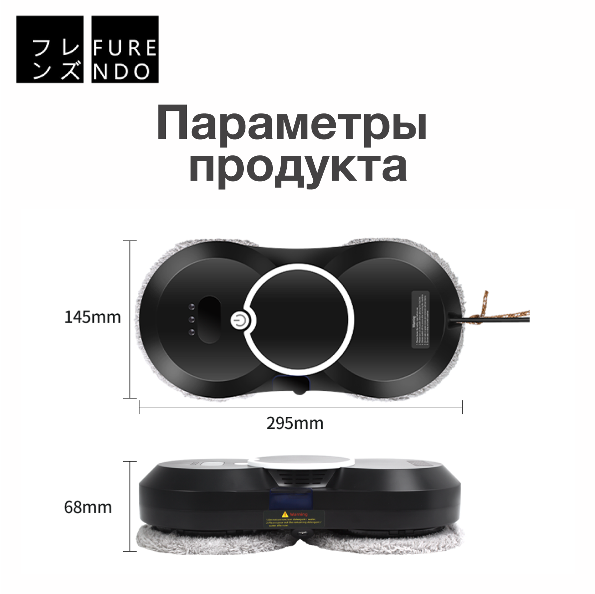 | Комплектация | адаптер питания / аккумулятор / моющая тряпка / пульт ДУ / страховочный шнур / щетка |