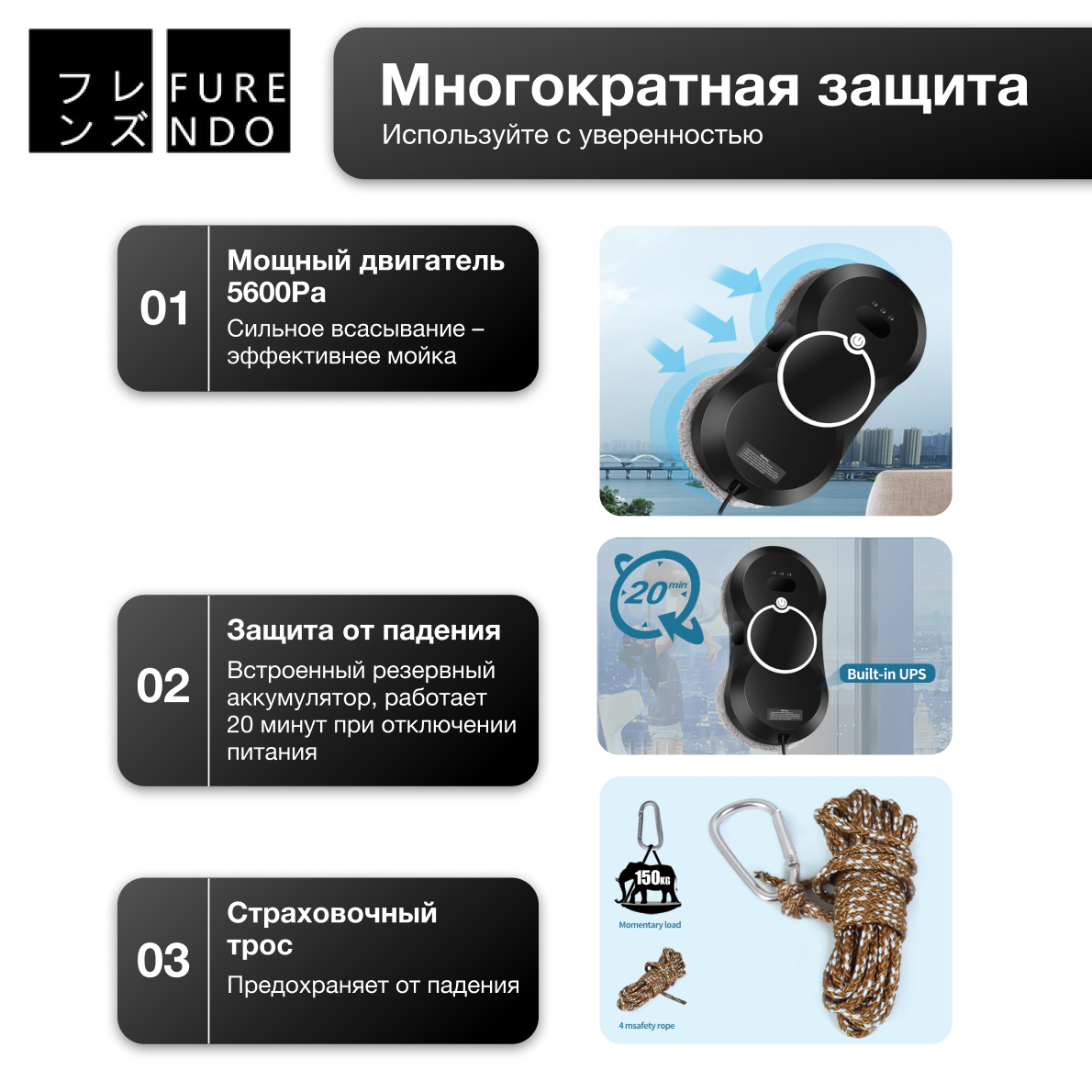 Робот мойщик окон Furendo WVC-01 интересное: