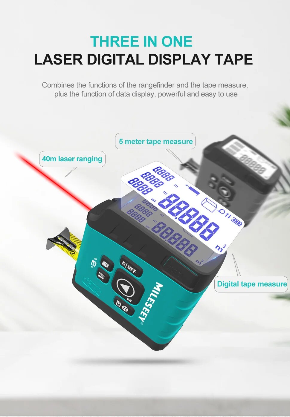Цифровой лазерный дальномер и рулетка 2 в 1 Mileseey DT11 интересное: