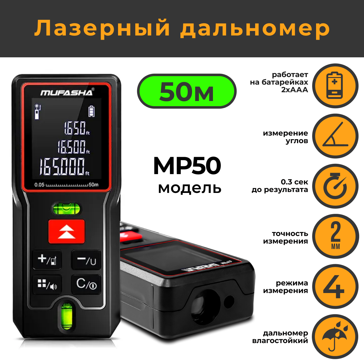 Дальномер лазерный для ремонта и строительства MUFASHA 50m / строительный / измеритель расстояния интересное: