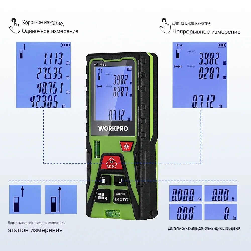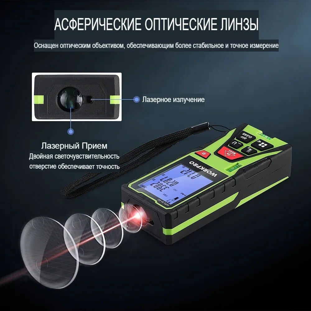 Лазерный дальномер WorkPro, 100м интересное: