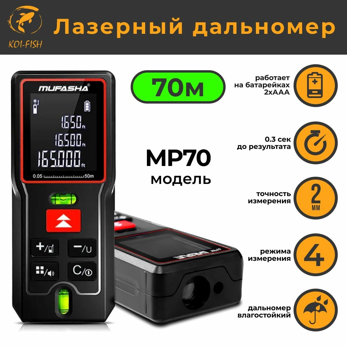 Дальномер лазерный для ремонта и строительства MUFASHA MP70 70m интересное: