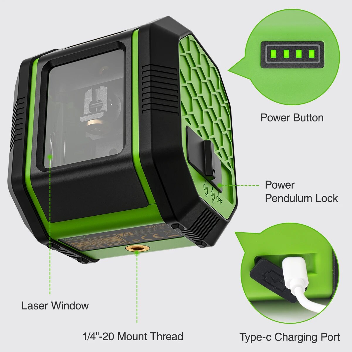 Лазерный уровень Huepar FC011G , 2 луча (зеленый луч) интересное: