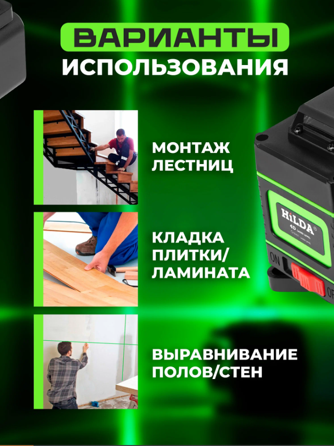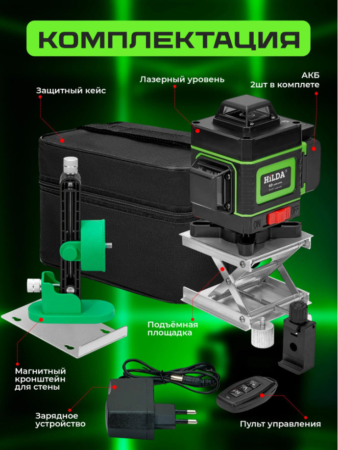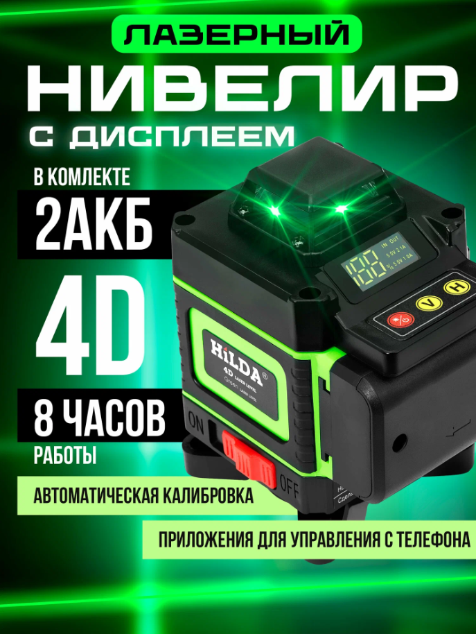Лазерный нивелир 4D HiLDA 16 линий с двумя аккумуляторами интересное: