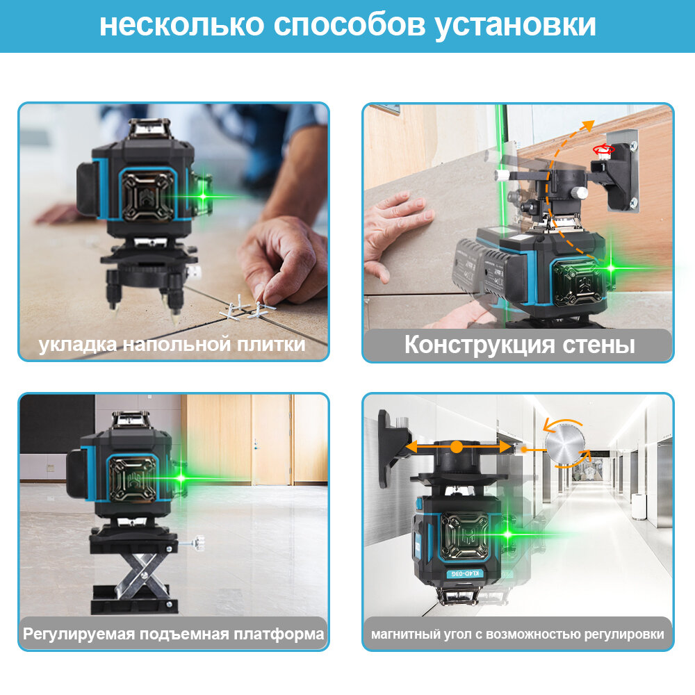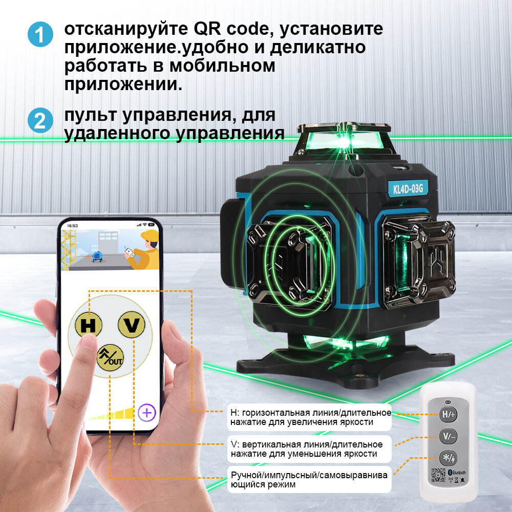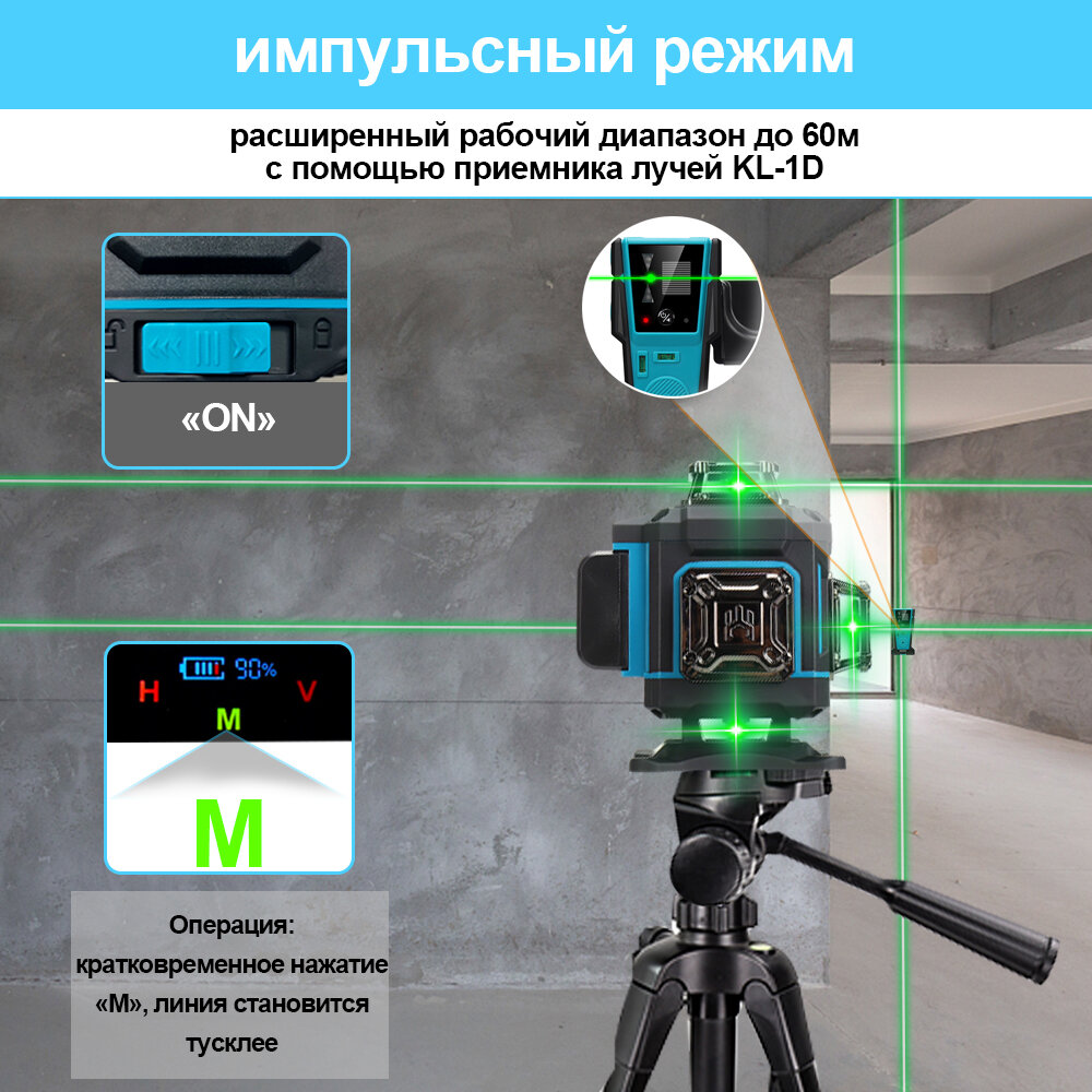 Лазерный уровень/нивелир Kezers KL4D-03G, Зеленый луч 360 4D 16 Линий Чемодан интересное: