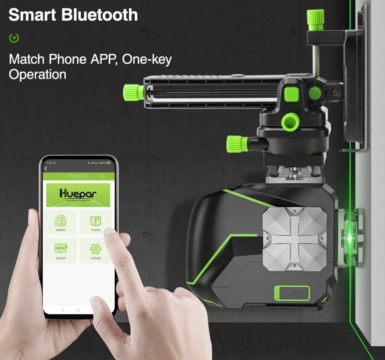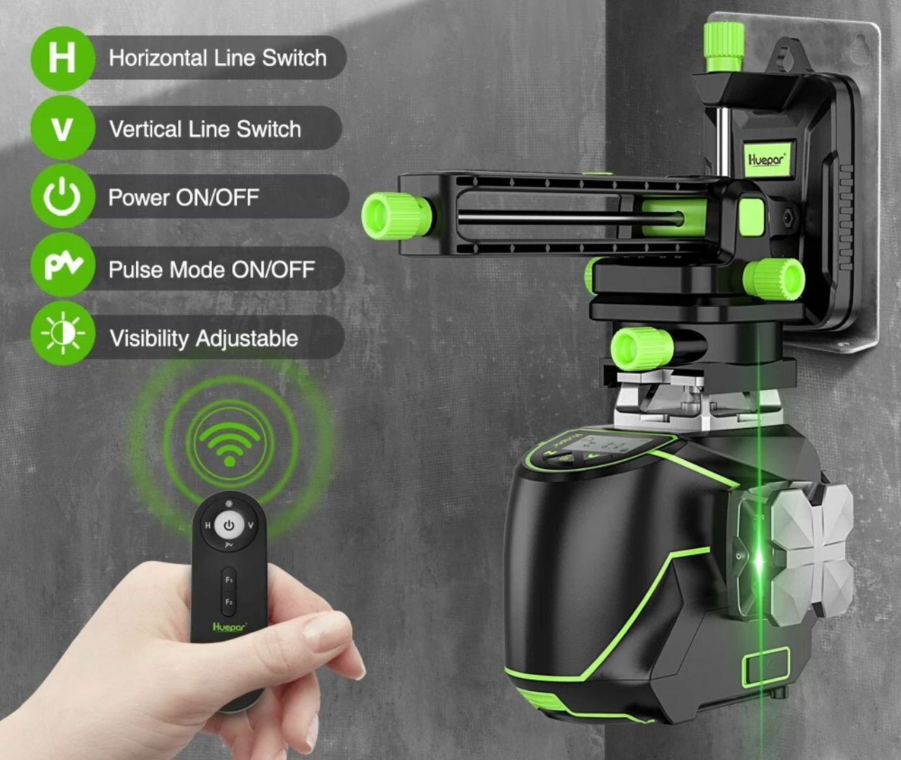 Лазерный уровень HUEPAR S03CG (3D, 12линий, Bluetooth, зеленый луч, OSRAM-Германия)