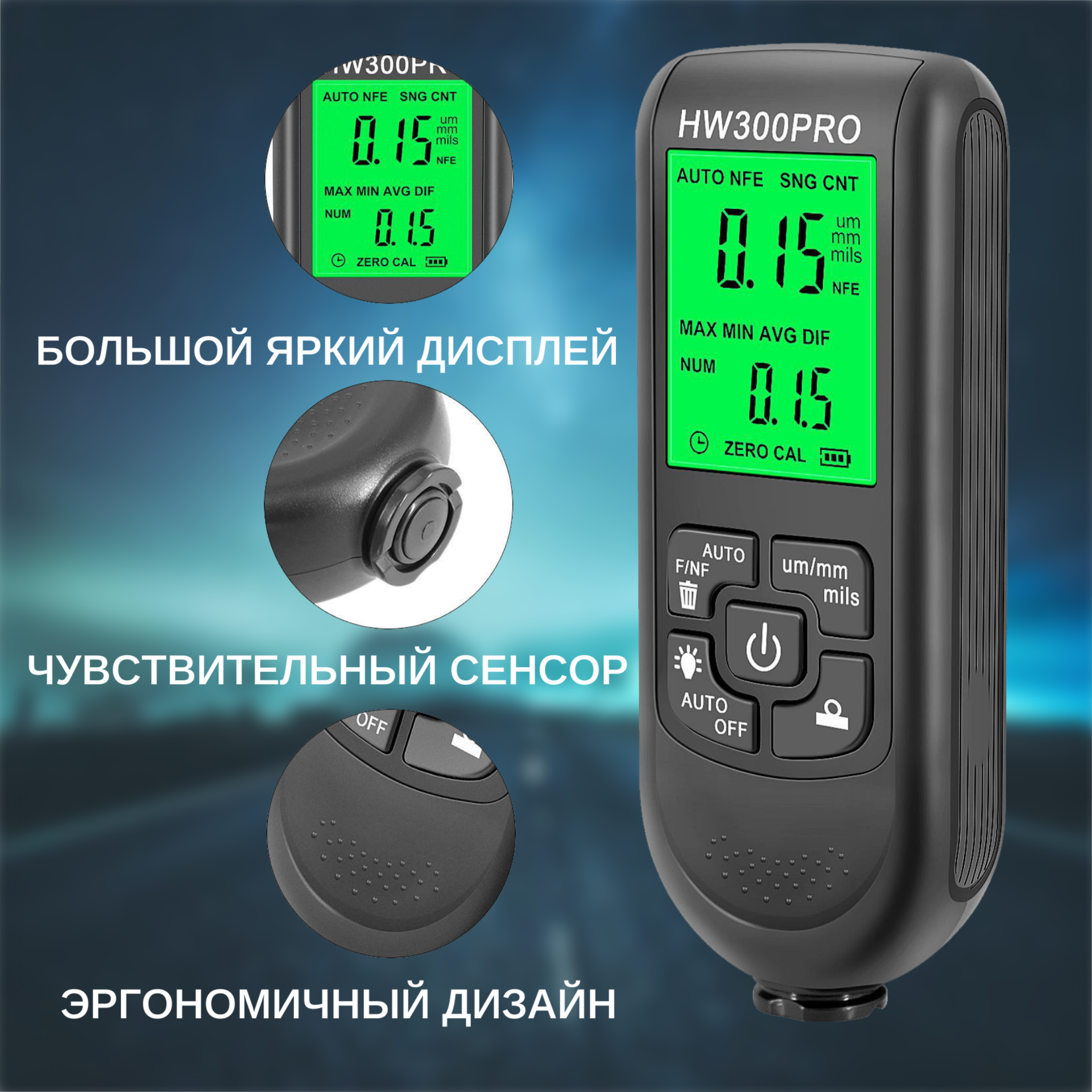 Толщиномер автомобильный лакокрасочных покрытий для автоподбора ЛКП магнитный HW300PRO интересное: