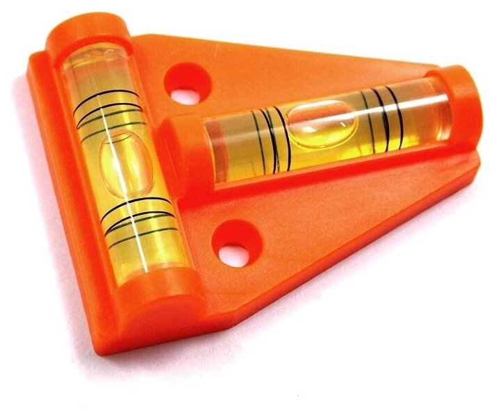 Купить Уровень строительный гидростатический (пузырьковый). Мини уровень двухплоскостной. 2 глазка (пузырьковые ампулы). Цвет Оранжевый.