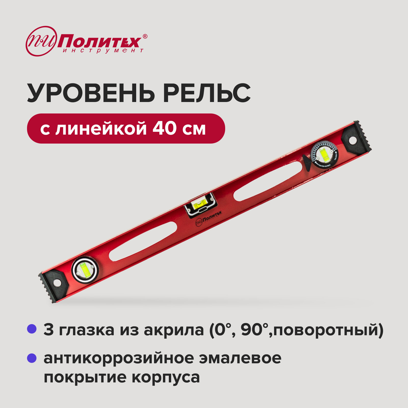 Уровень красный рельс 2 глазка + 1 поворотный 0,4 м Политех Инструмент интересное:
