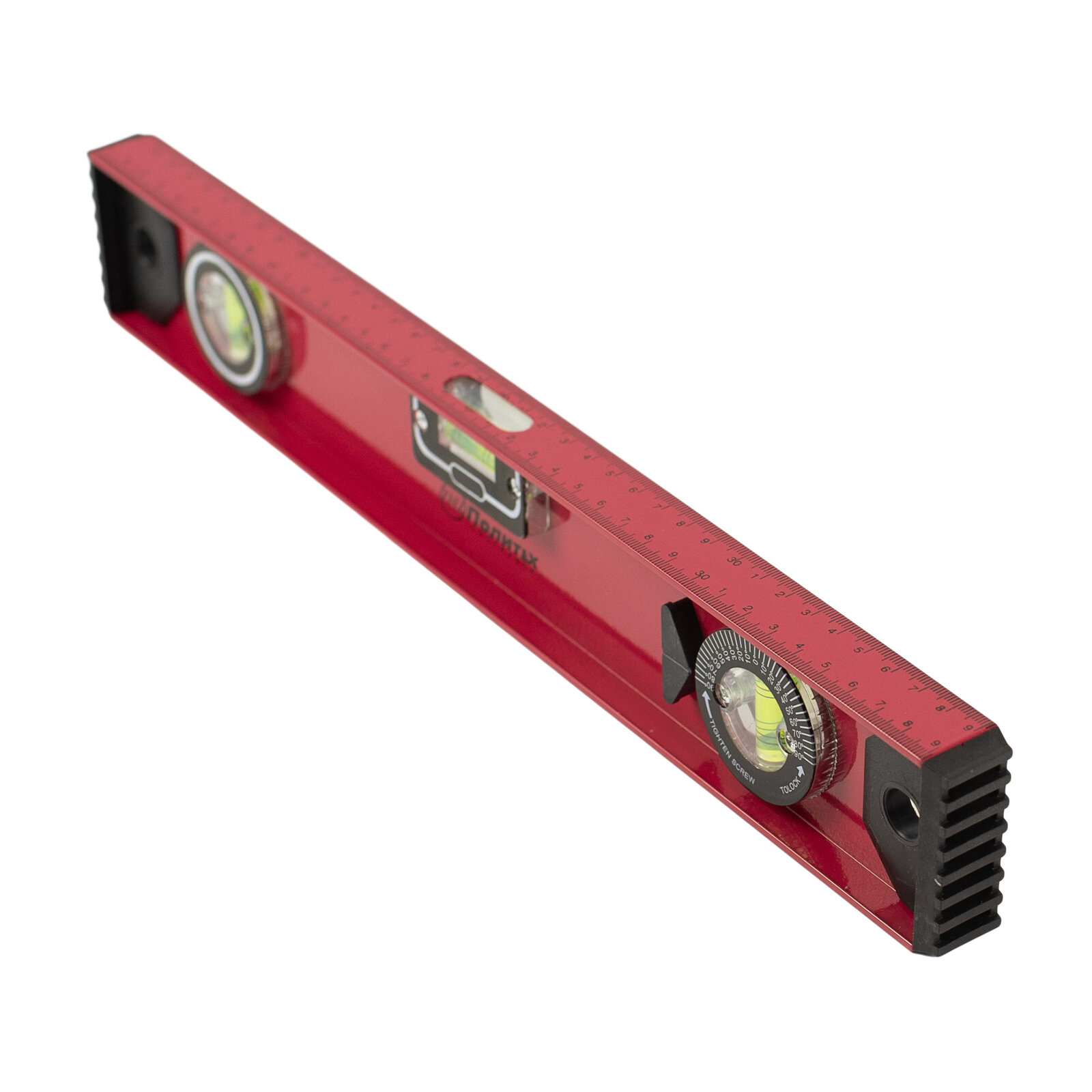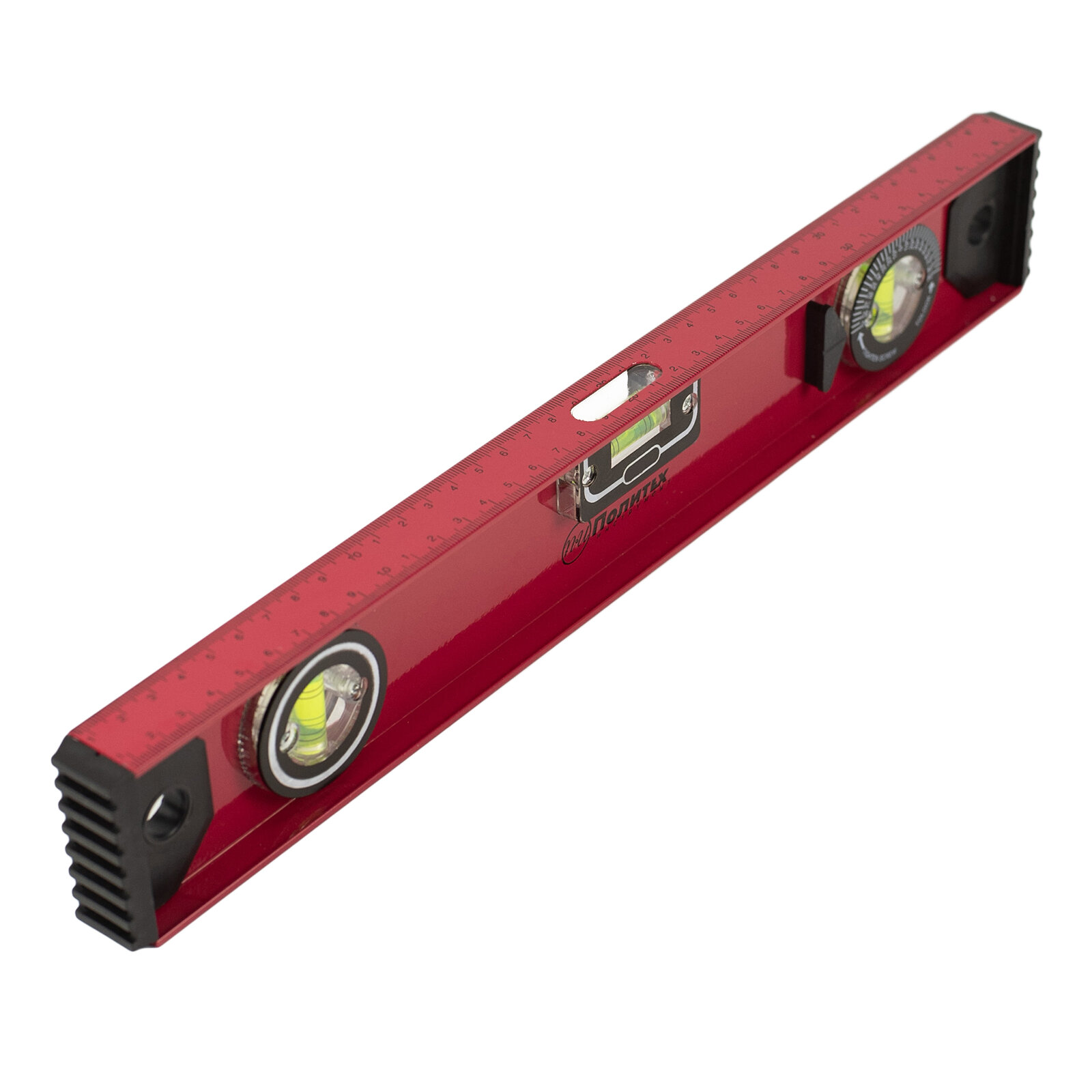 Купить Уровень красный рельс 2 глазка + 1 поворотный 0,4 м Политех Инструмент