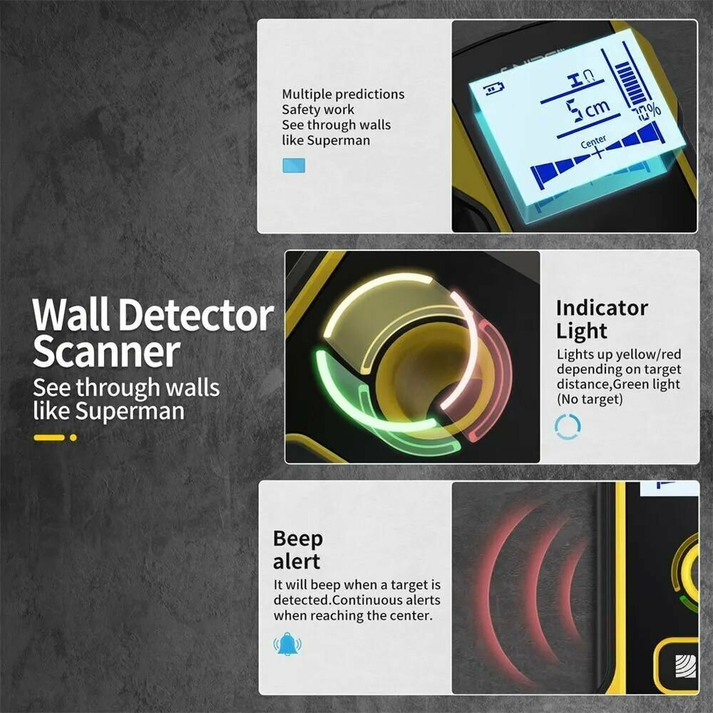 TH(610)-UE (Z62227ED) - индикатор-детектор проводки и металла 3 в 1, поиск-индикатор кабеля в стене. Автоматическая калибровка