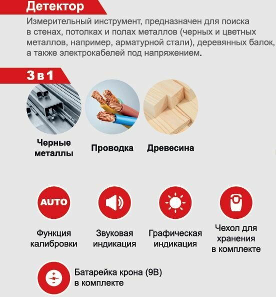 TH(610)-UE (Z62227ED) - индикатор-детектор проводки и металла 3 в 1, поиск-индикатор кабеля в стене. Автоматическая калибровка
