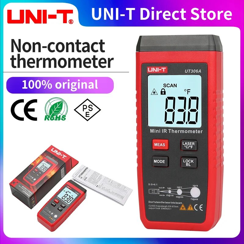 Купить Карманный инфракрасный пирометр UNI-T UT306A с ЖК-дисплеем и функцией фиксации показаний и подсветкой