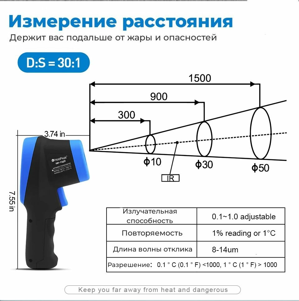 Бесконтактный пирометр HoldPeak HP-1320 интересное: