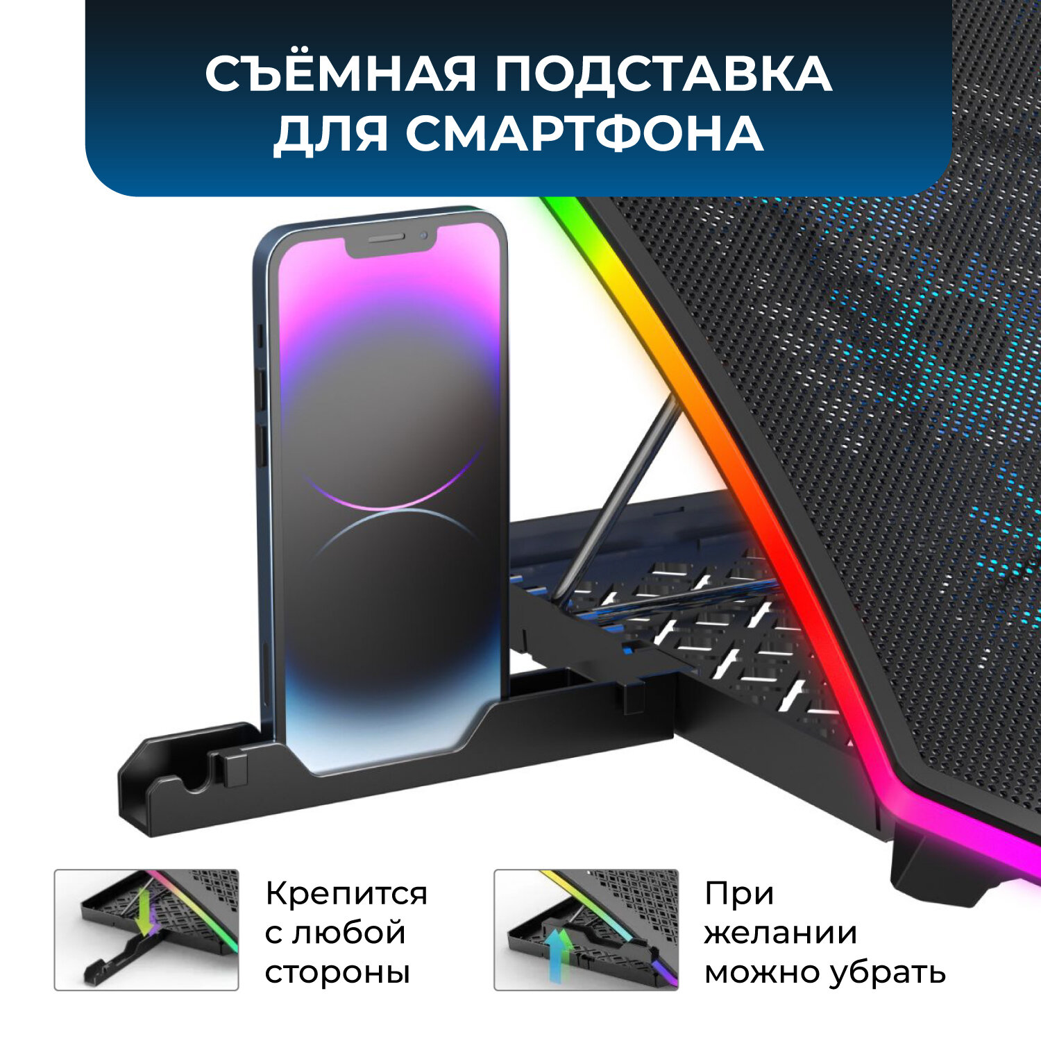 Охлаждающая подставка для ноутбука до 18", 9 вентиляторов , 2 USB, регулировка наклона + стенд для смартфона KS-is интересное: