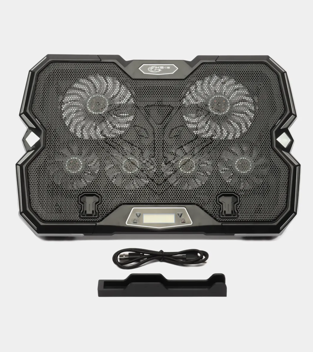 Подставка вровень с моим ноутбуком 17.3 дюйма. Клёвый дизайн, подсветка, с возможностью выбора параметров освещения. Уровень шума в пределах нормы для такой конструкции в 6 вентиляторов. Ноутбук стоит устойчиво, благодаря подпоркам, да и в целом очень гармонично. Посмотрим как покажет себя в играх, пока все устраивает вполне)