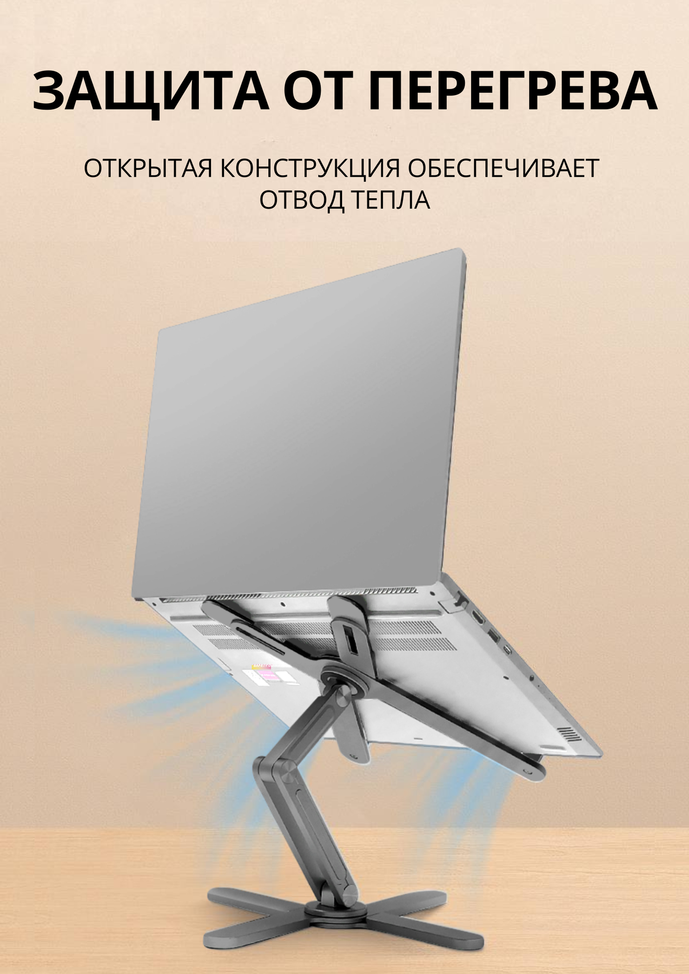 Подставка для ноутбука и планшета Safety DJ складная алюминиевая с вращением на 360 градусов, регулировкой высоты и угла наклона (тёмно-серая) интересное: