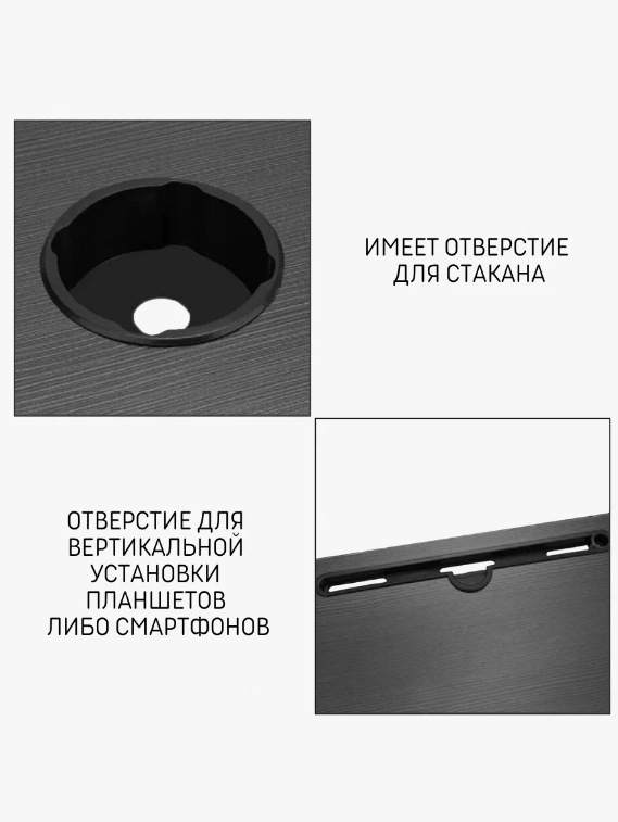 Стол для ноутбука с подстаканником и держателем под планшет или телефон. Компьютерный стол черный интересное: