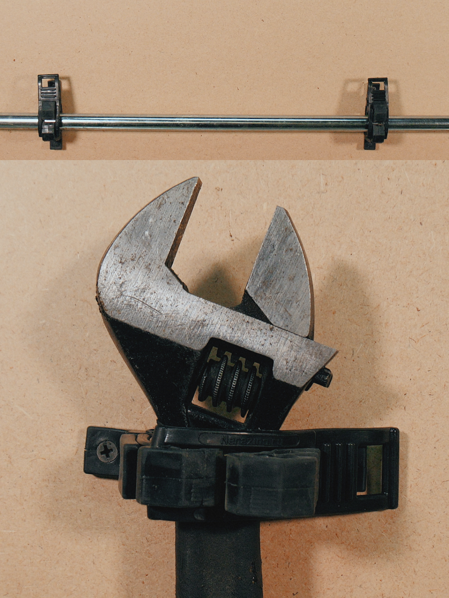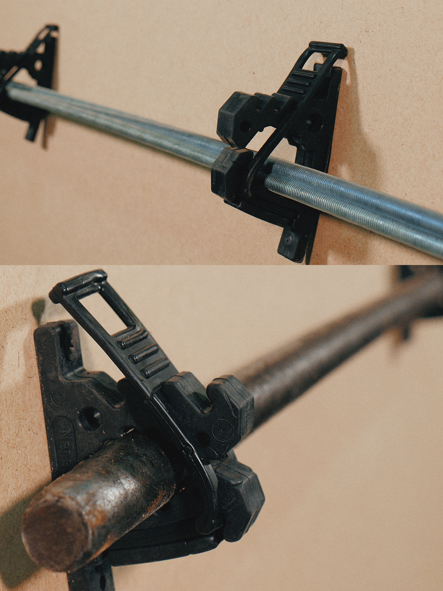 | Подробная комплектация | 2 полиуретановых держателя для инвентаря (лопат, граблей, черенков, удочек, инструмента и др.) |