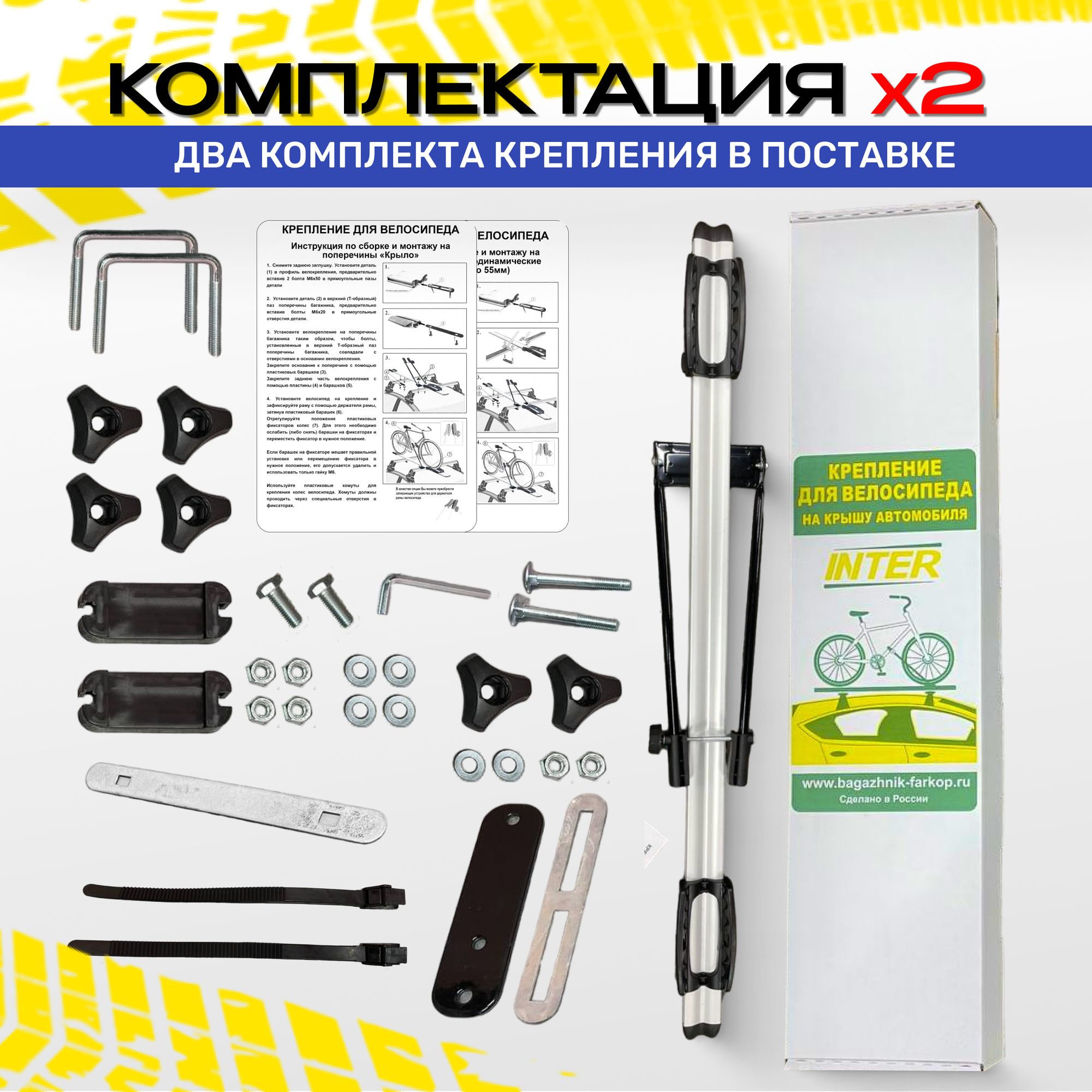 Купить Велокрепление Inter (2 штуки) алюминиевое для перевозки двух велосипеда на крыше автомобиля.