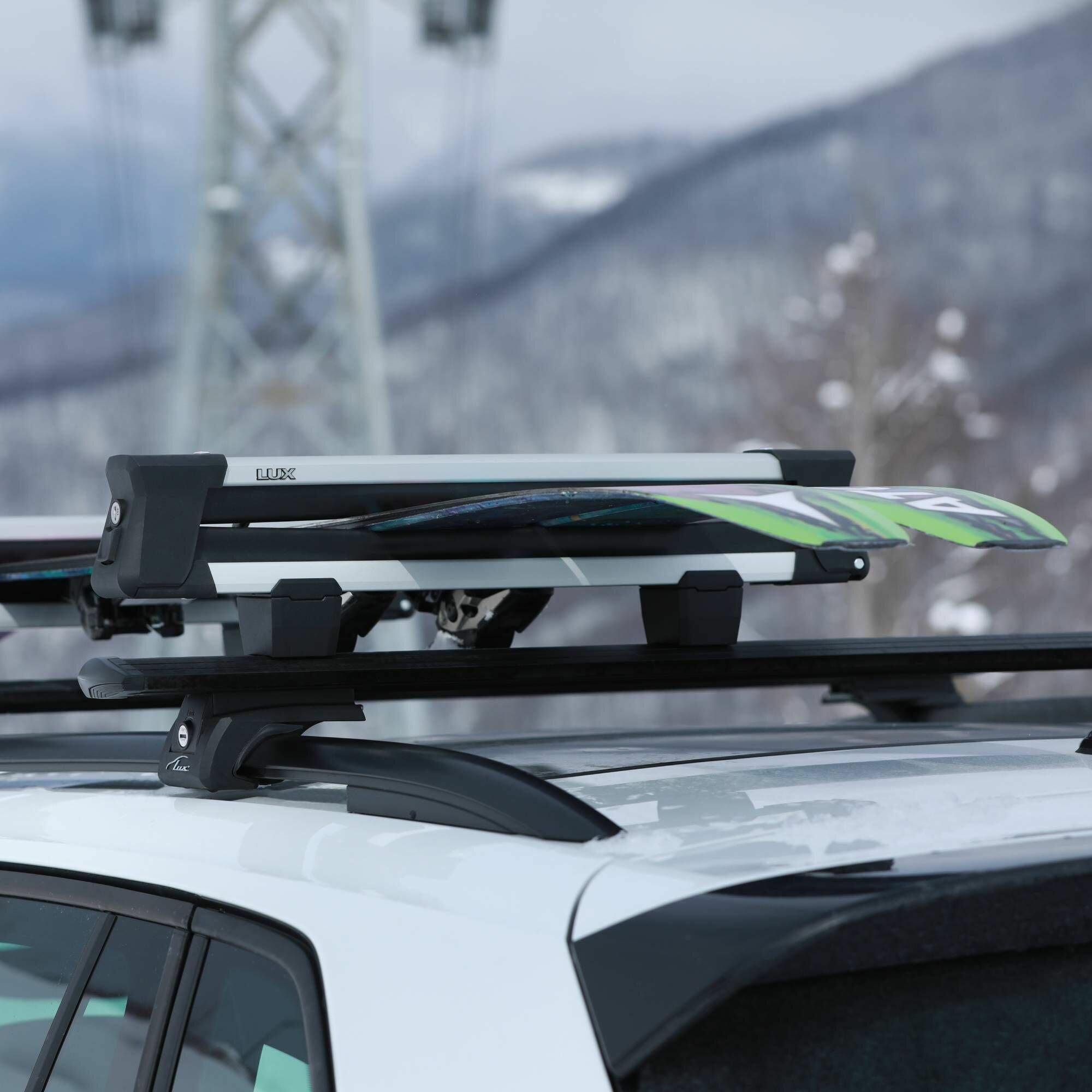 Крепление для перевозки 4 пар лыж или 2 сноубордов LUX эльбрус 500 4 пар лыж или 2 сноубордов серебристое с замком на крышу / для багажника с крыловидными или аэро поперечинами