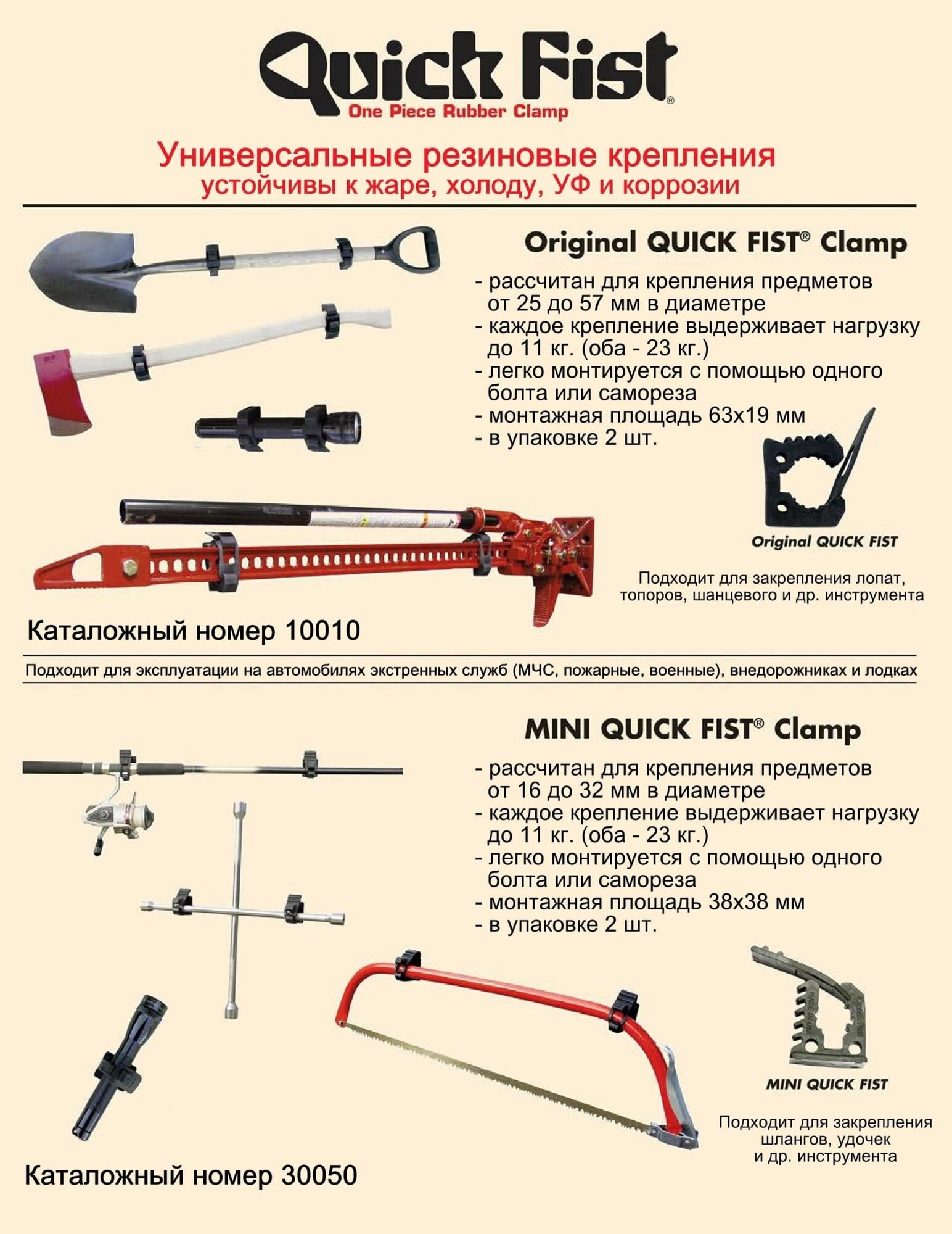 | Подробная комплектация | Крепление универсальное Quick Fist диаметр захвата 64 - 240мм. 1 шт. |