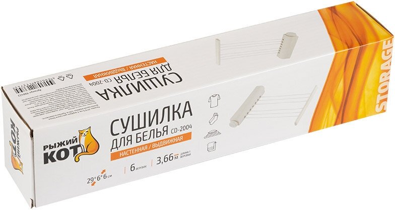 | Дополнительная информация | Сушилка для белья Рыжий кот настенная, выдвижная CD-2004, белая |
