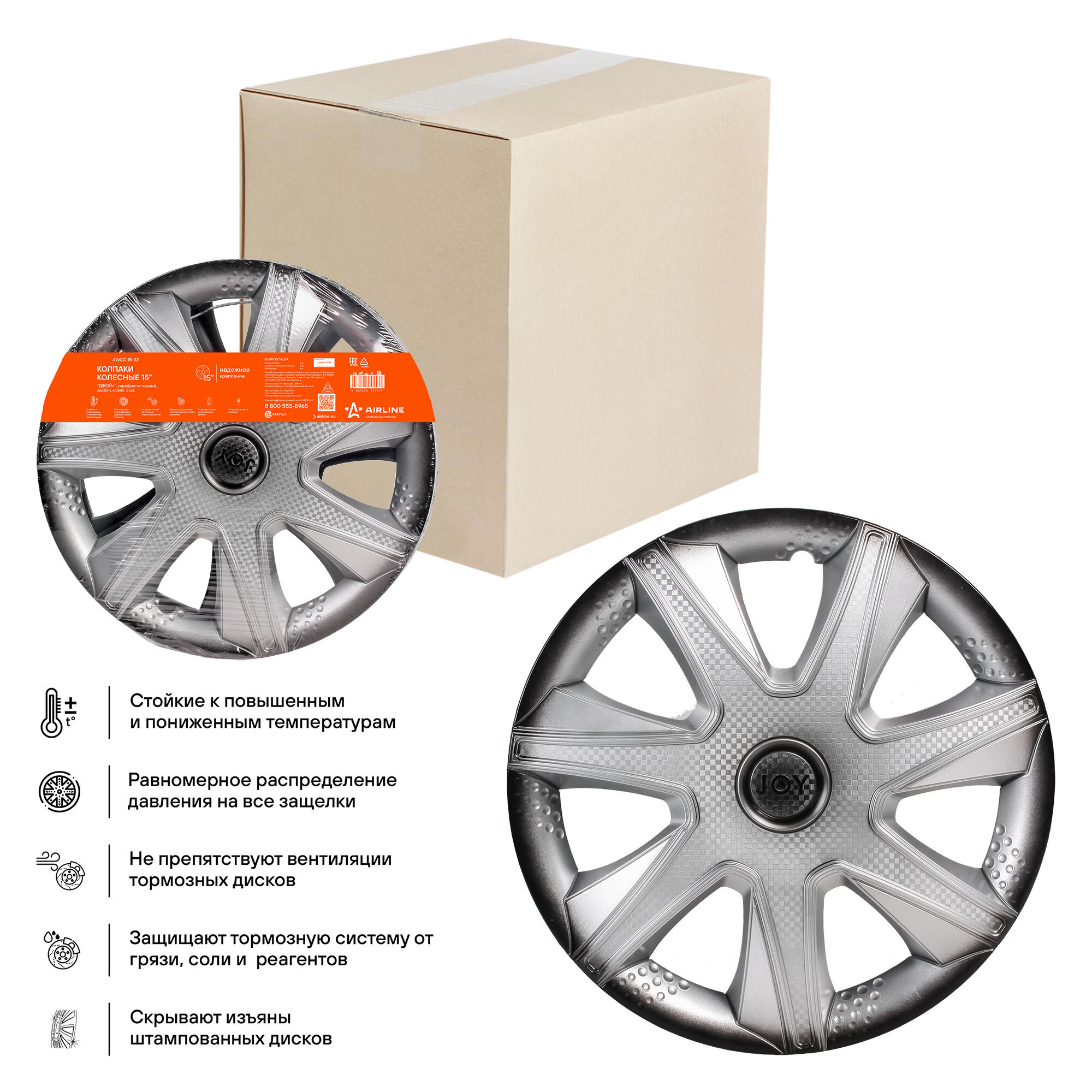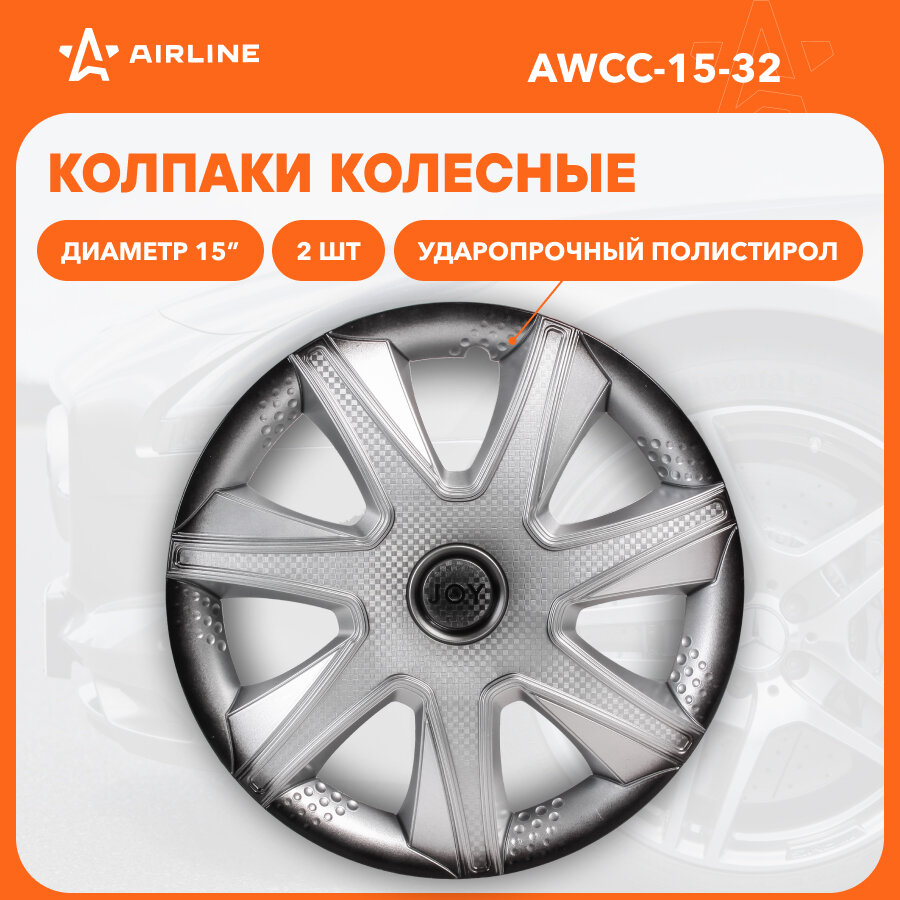 Колпаки Колесные Airline Awcc-15-32 15" "Джой +",Серебристо-Черный, Карбон,2 Шт. AIRLINE арт. AWCC-15-32