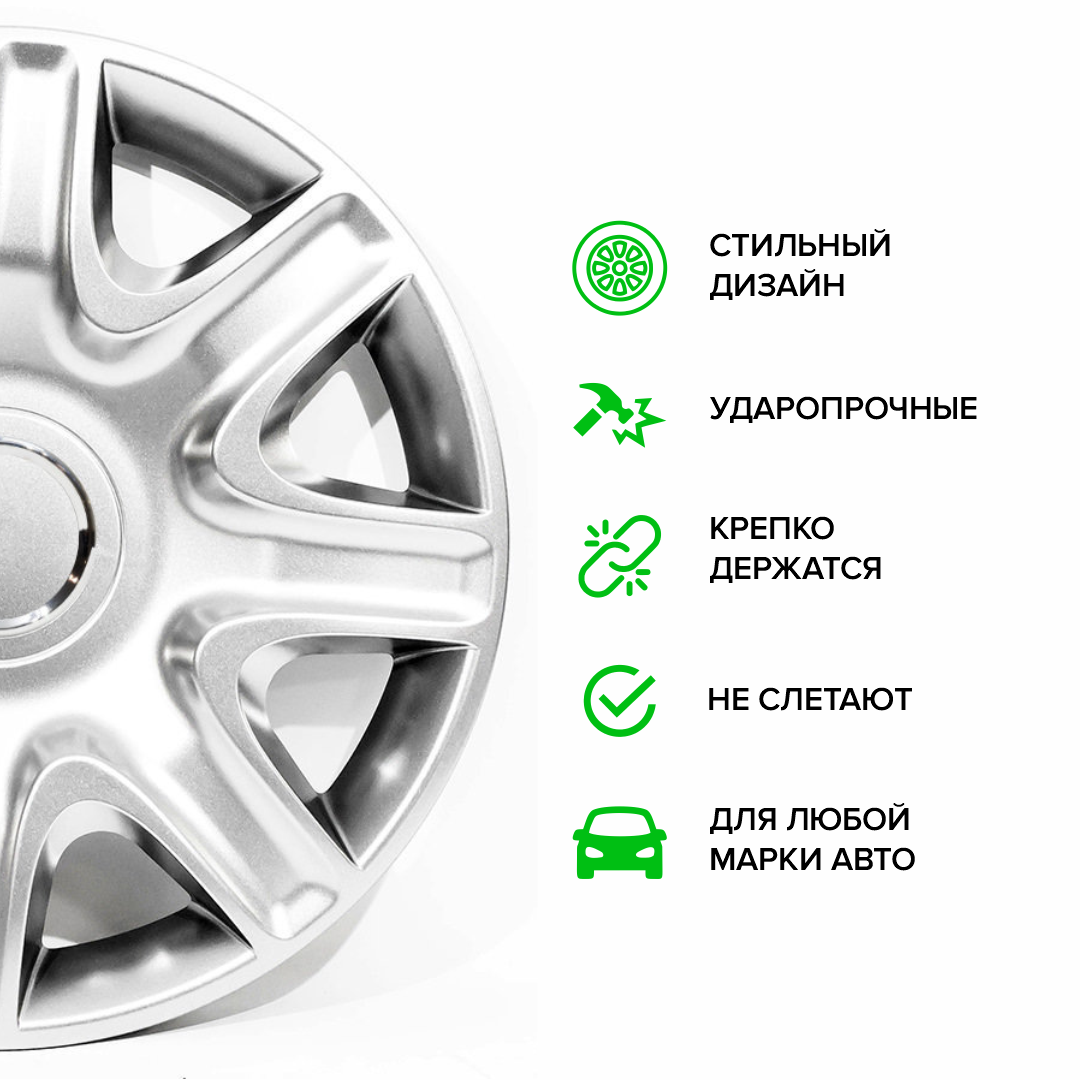| Дополнительная информация | В комплекте 4 колпака - R15 (пятнадцатый радиус) на штампованные диски |