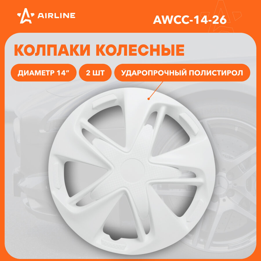 AIRLINE AWCC-14-26 Колпаки колесные 14" "Супер Астра", белый, карбон, компл. 2 шт.