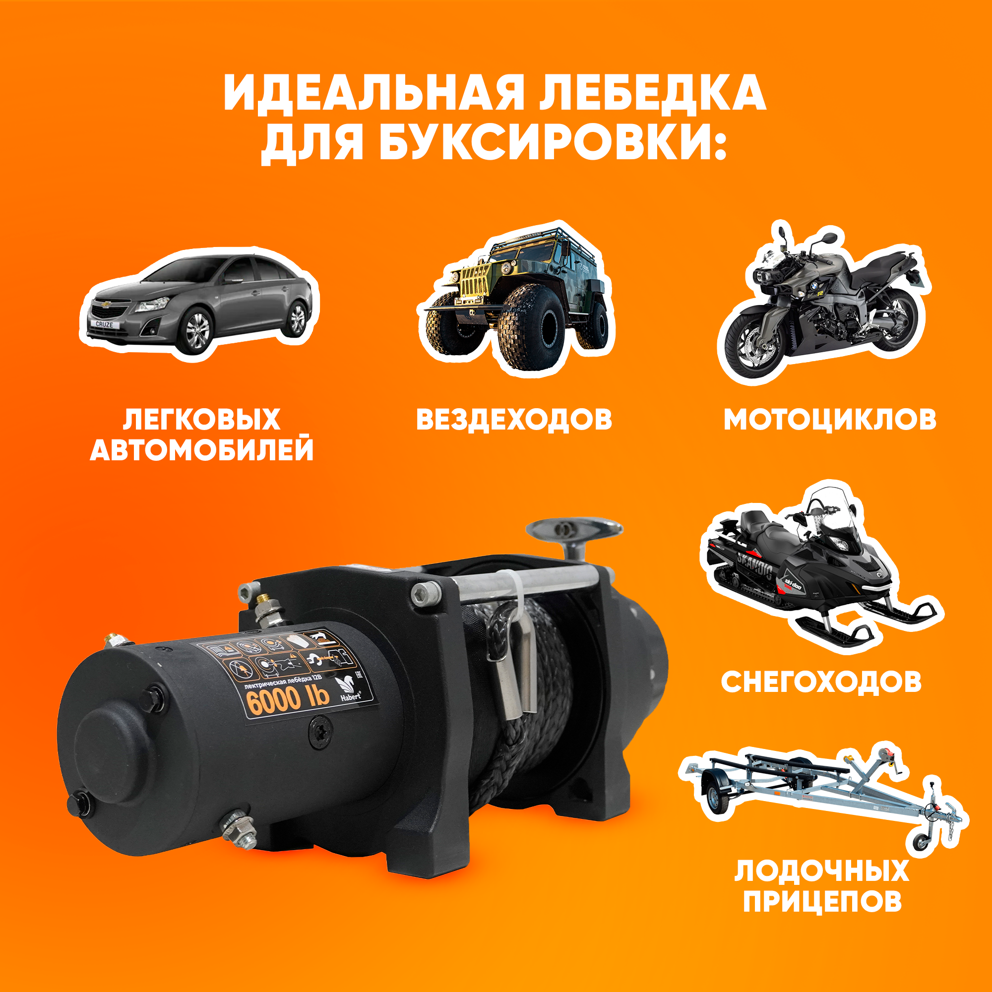 Лебедка электрическая Habert 6000LB синтетический трос 3,3 кВт/4,4 л. с.