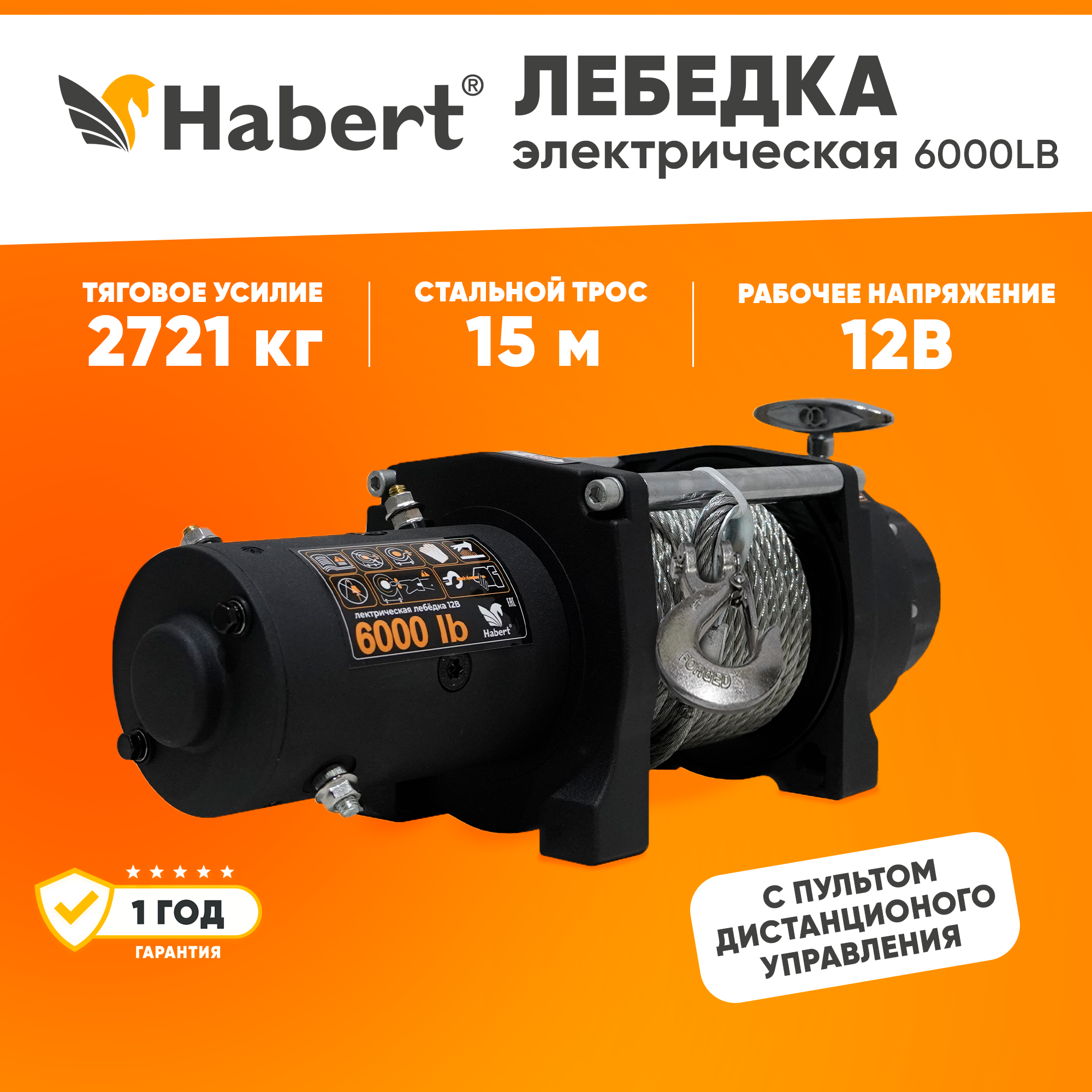 Лебедка электрическая Habert 6000LB стальной трос 3,3 кВт/4,4 л.с. интересное: