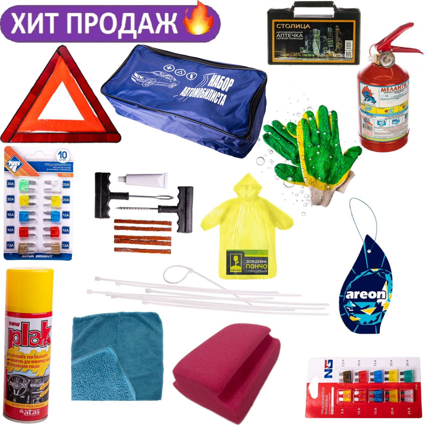 Набор автомобилиста С-15. Огнетушитель 1кг, знак аварийный, аптечка, трос лента 5т интересное: