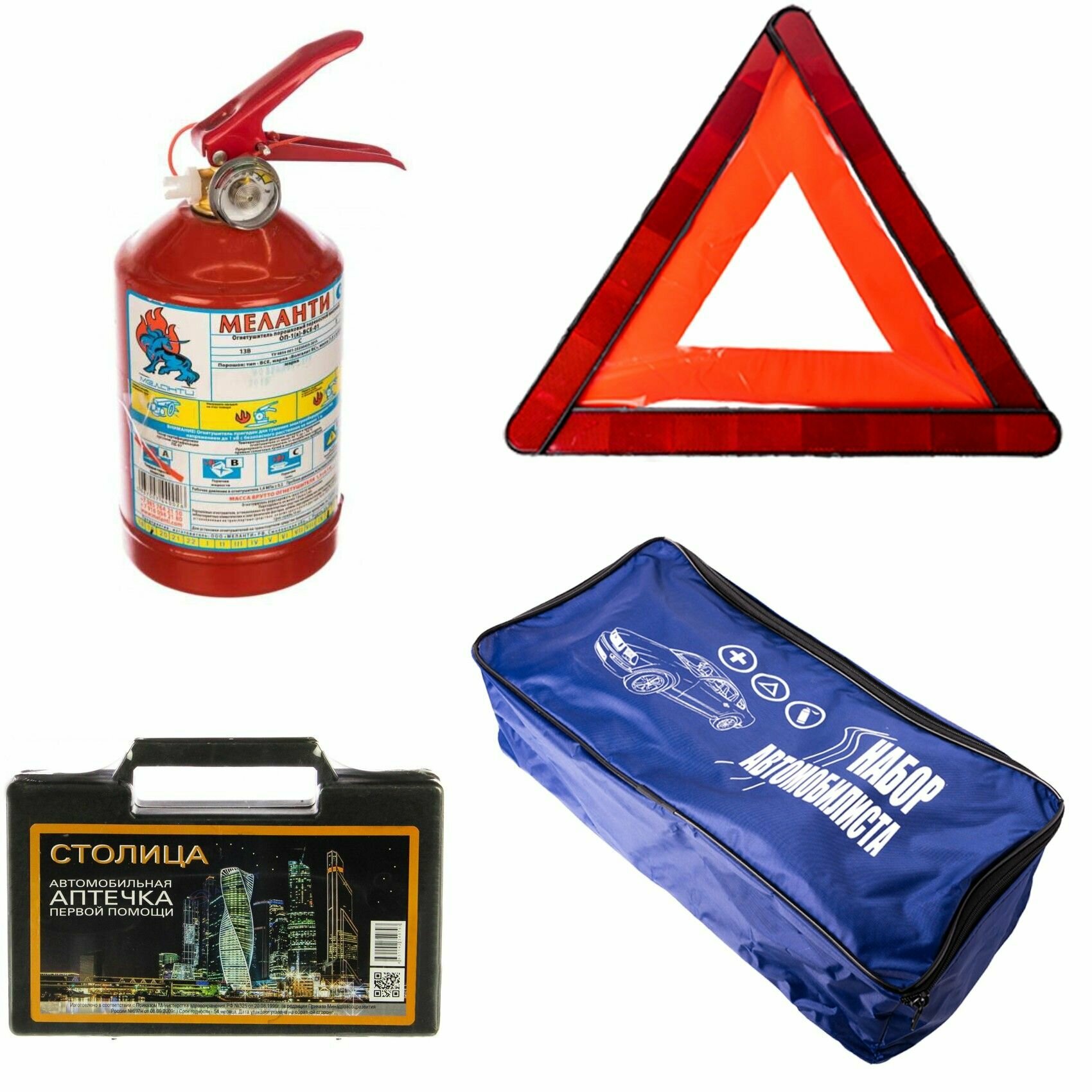 Набор автомобилиста N-2 с огнетушителем, с аптечкой, со знаком аварийной остановки. интересное: