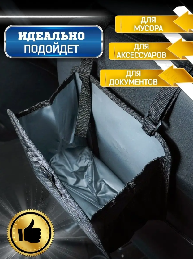 | Отзыв: | У меня в машине всегда много вещей и мусора. Купила эту сумку, складываю лишнее, очень удобно. Легко помещается между сидениями, не мешает. |