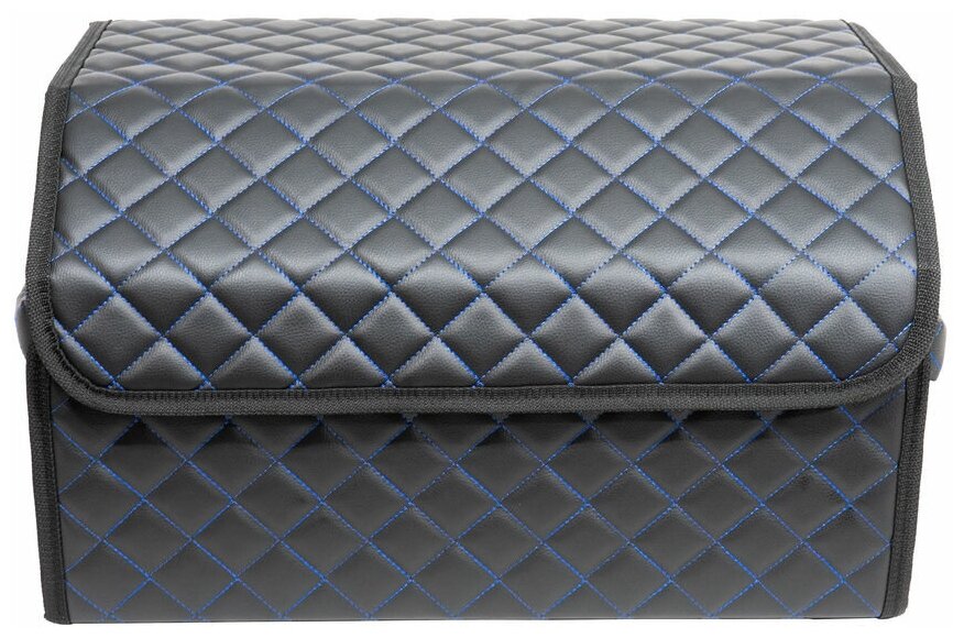 Купить Сумка - Органайзер в багажник автомобиля из экокожи (черный с синей строчкой, 50х30х30)