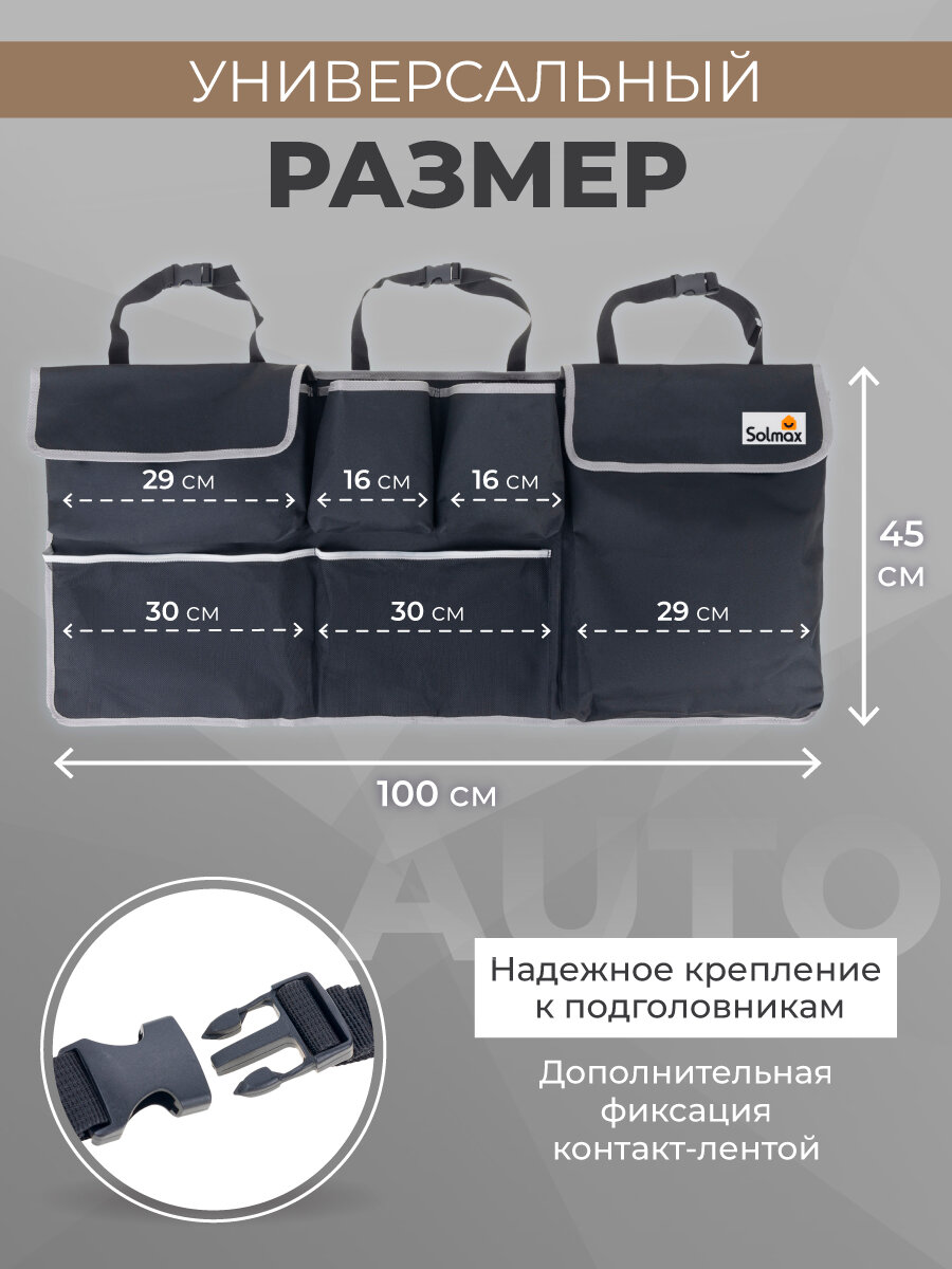 Автомобильный подвесной органайзер Solmax в багажник на заднюю спинку сиденья с карманами