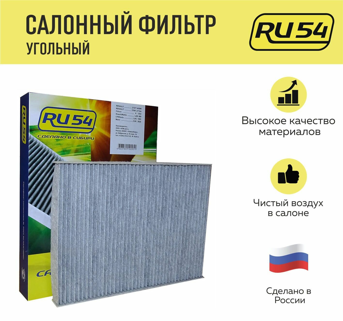 Фильтр салона угольный для RENAULT Koleos (HY0) кросс-номер MANN CUK 2620 /OEM 272770840R 272774658R интересное: