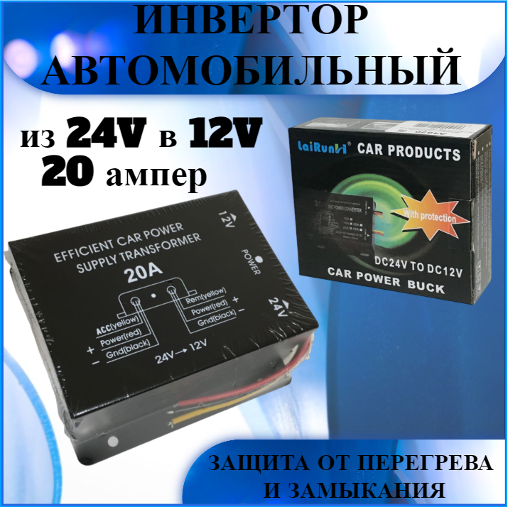 Автомобильный Инвертор (преобразователь напряжения) 24V на 12V 20A интересное: