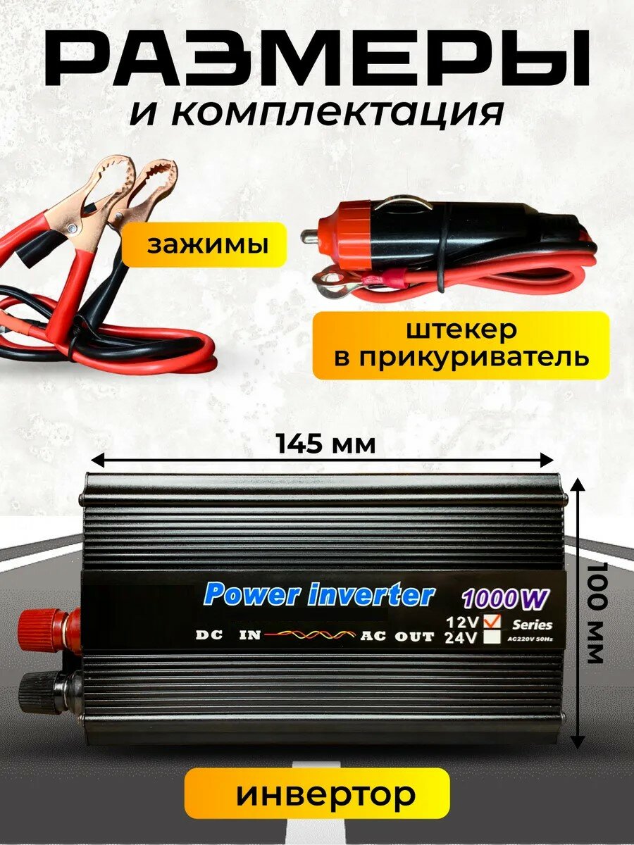 Инвертор автомобильный 12 В, автомобильный инвертор 220, автомобильный преобразователь напряжения 1000Вт, 1 USB, защита от перегрева интересное: