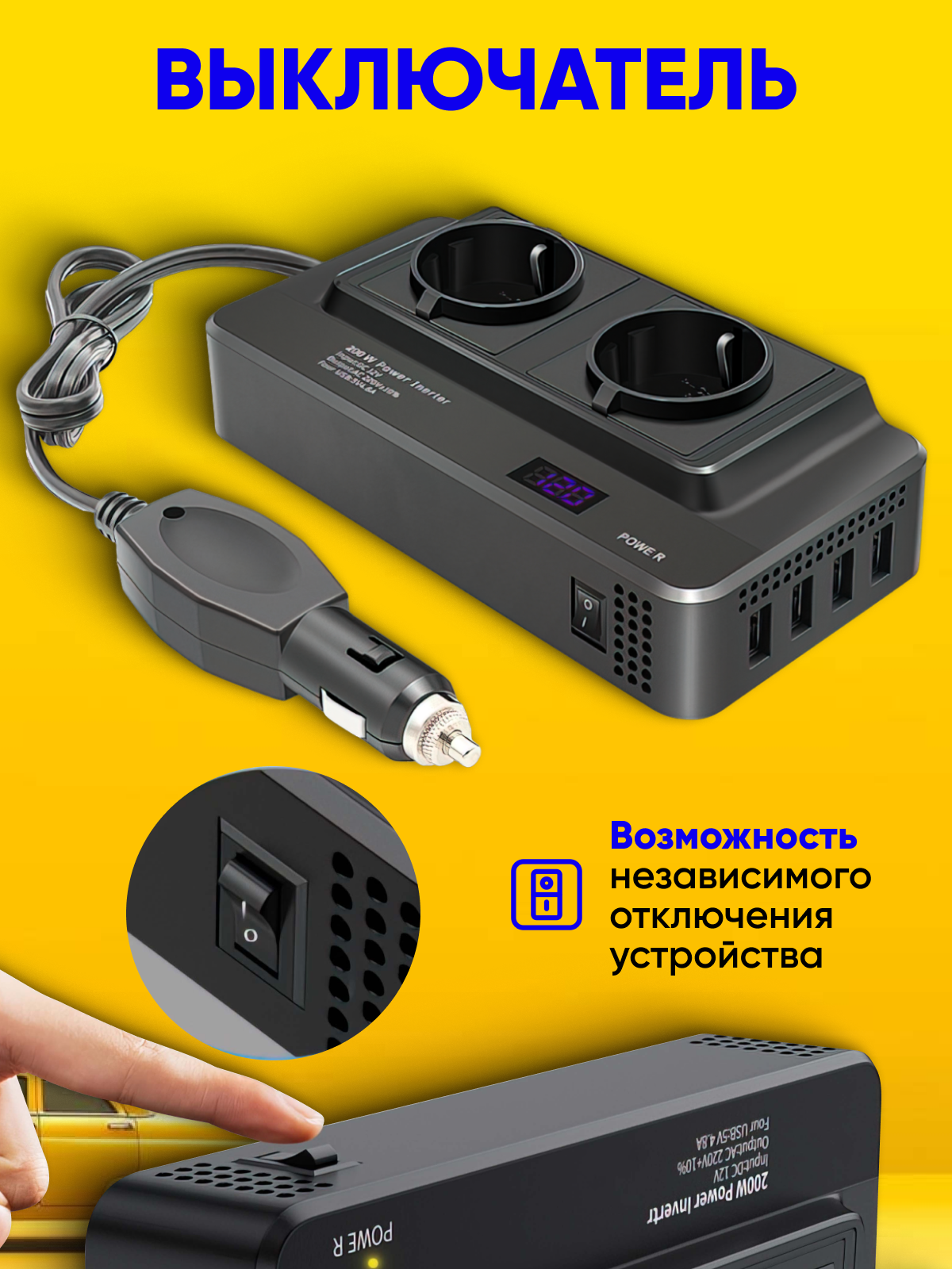 Купить Автомобильный преобразователь напряжения 12-220 В с цифровым светодиодным дисплеем