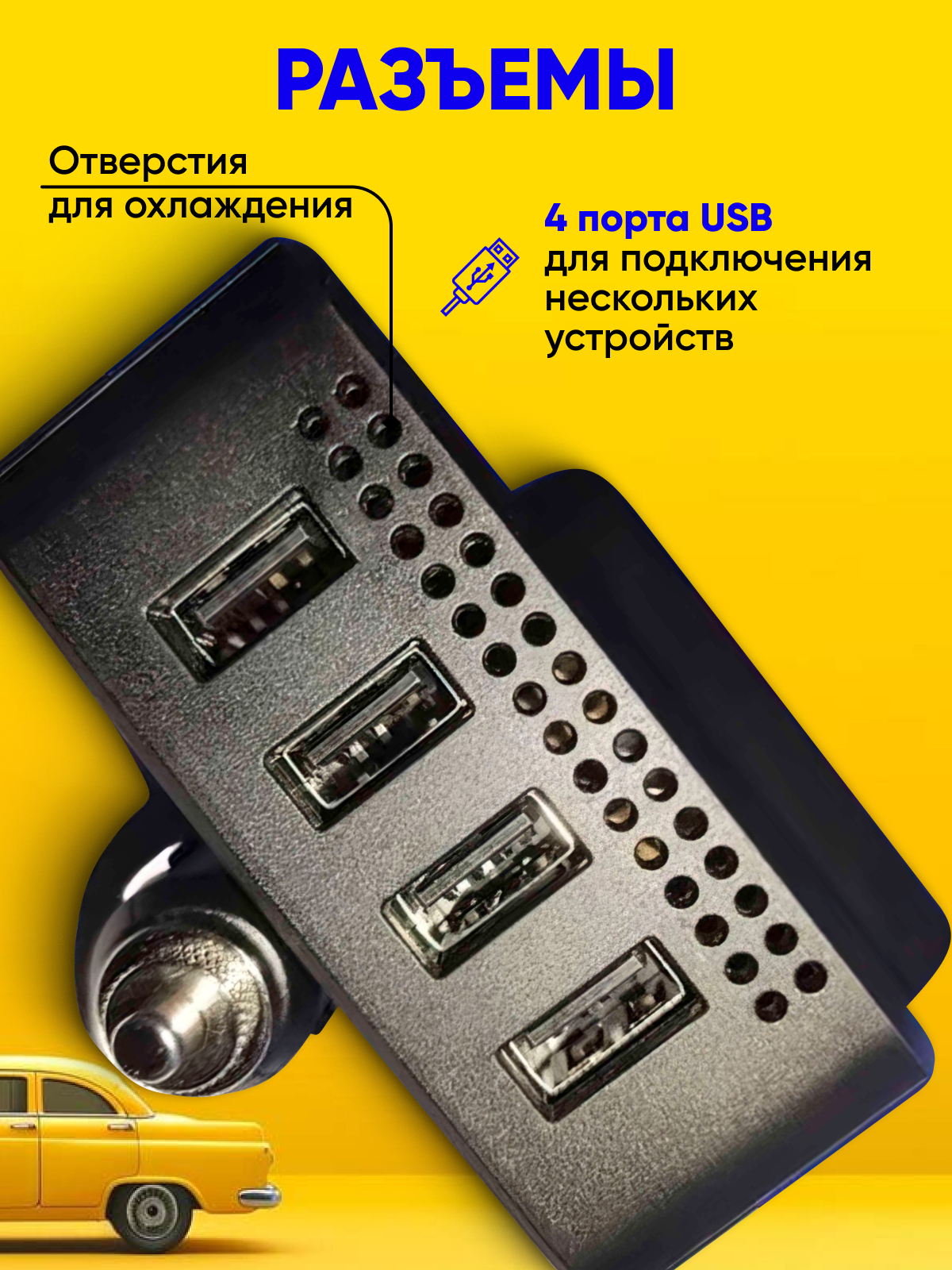 Инвертор автомобильный преобразователь напряжения 12-220V 4 USB цвет черный