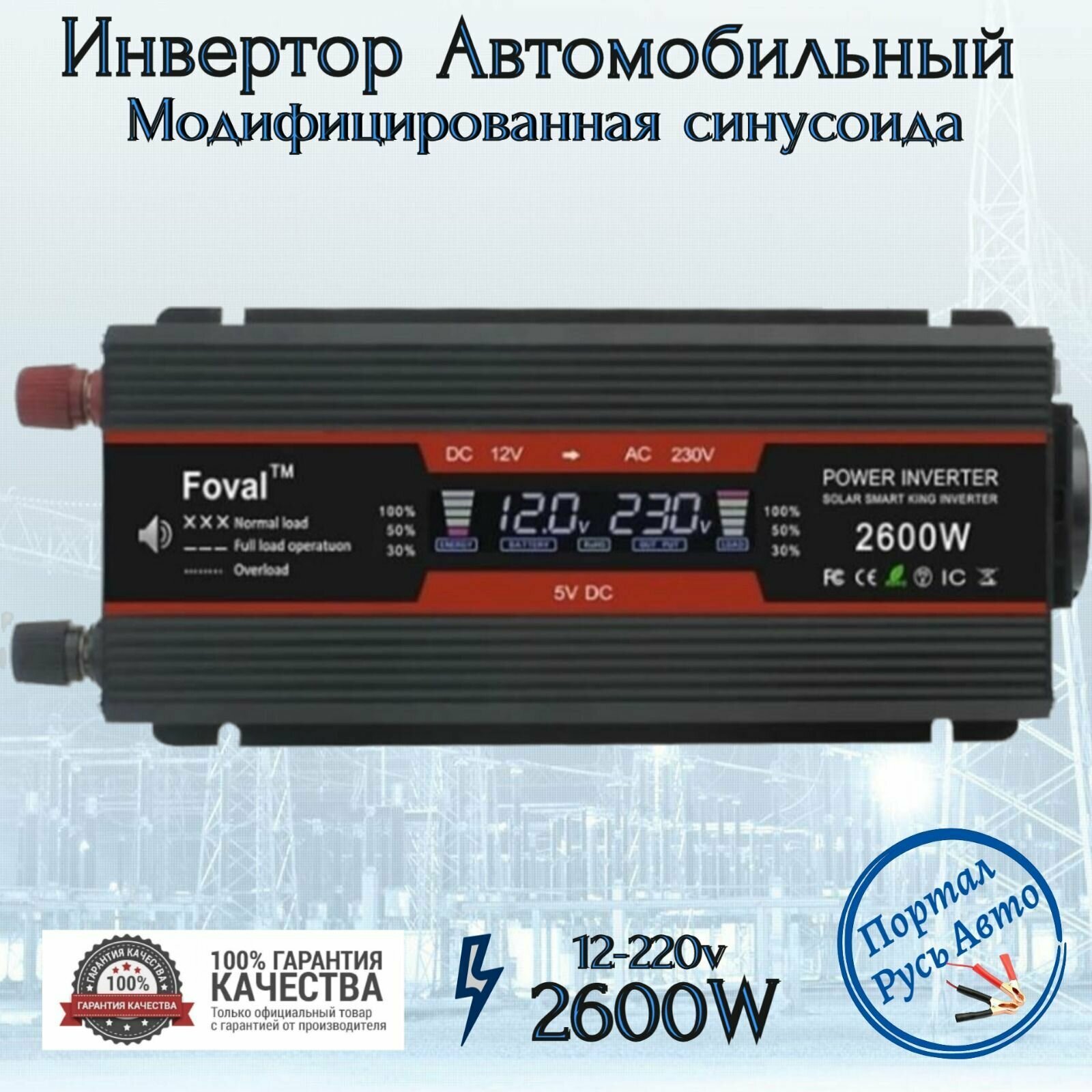 Автомобильный преобразователь напряжения инвертор 2500w-2600Вт 12В-220В Foval Чистый синус. Чистая, немодифицированная синусоида.