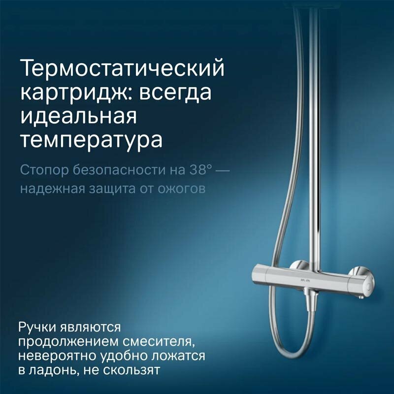 AM.PM Комплект душевой системы AM.PM Like F0780422 со смесителем, термостат, верхний душ 220 мм, ручной душ 120 мм