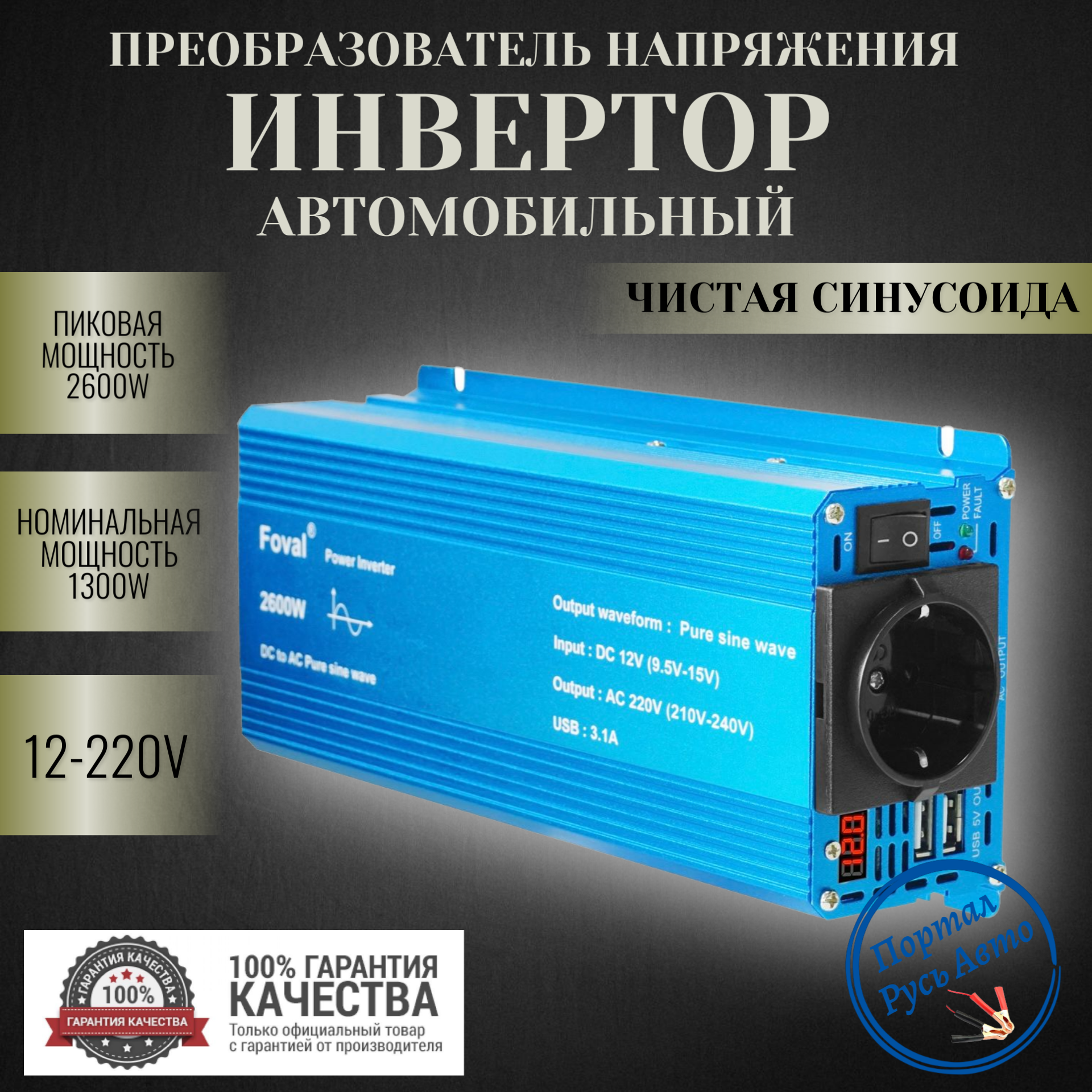 Автомобильный преобразователь напряжения инвертор FOVAL автомобильный 1500 w 12v-220v Чистая, немодифицированная синусоида.