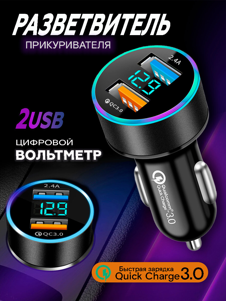 Разветвитель usb автомобильный в прикуриватель авто, зарядное устройство в машину, быстрая зарядка