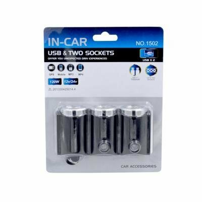Купить Автомобильный разветвитель прикуривателя IN-CAR 1502 /2 гнезда + 2*USB / 120W