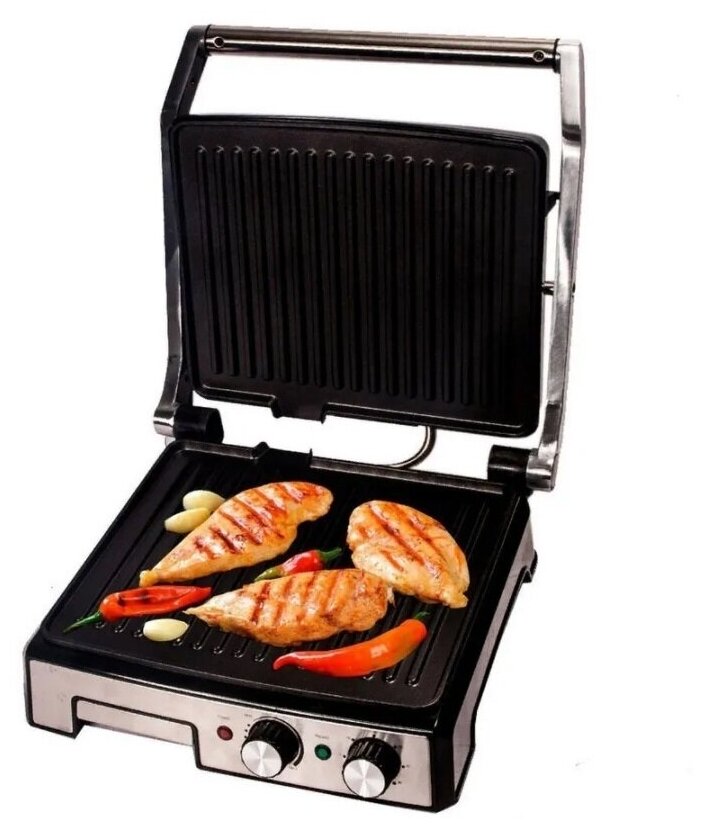 Электрогриль DOMFY Metal DSM-EG502, черный и серебристый