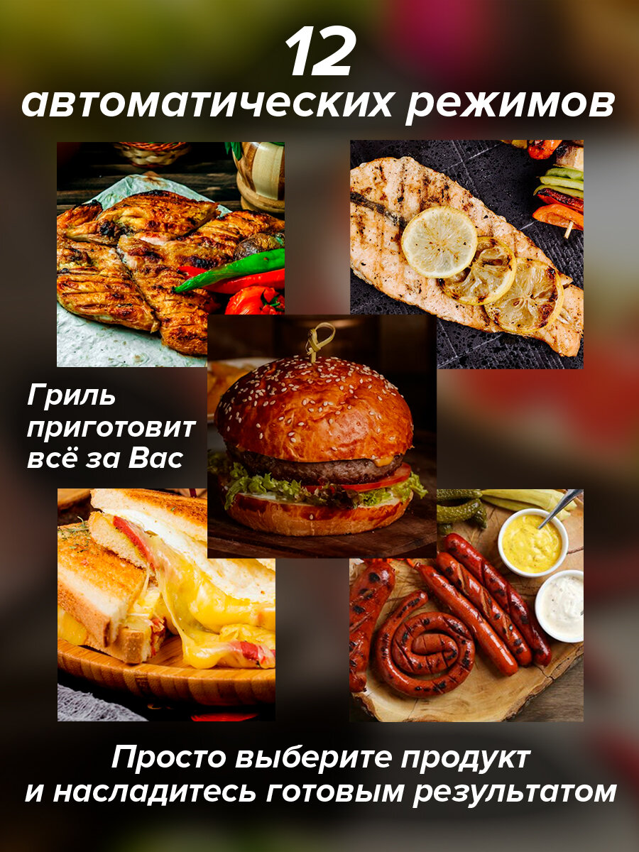 | Отзыв: | Очень порадовало, что имеет большую сенсорную удобную панель управления и 12 встроенных автопрограмм. Отлично подходит для жарки стейков (можно даже выбрать степень прожарки), а благодаря термощупу (он идет в комплекте) это легко регулировать. Мощность у гриля 2000 Вт, он имеет съемные панели, которые можно мыть в посудомоечной машине. Благодаря качественному антипригарному покрытию ничего не подгорает и не прилипает в процессе приготовления. Гриль раскладывается на 180 градусов, а значит панели можно использовать как две независимые поверхности для жарки. Корпус у данной модели выполнен из металла, ручка не нагревается. Очень удобен в использовании и отлично показал себя в работе! |